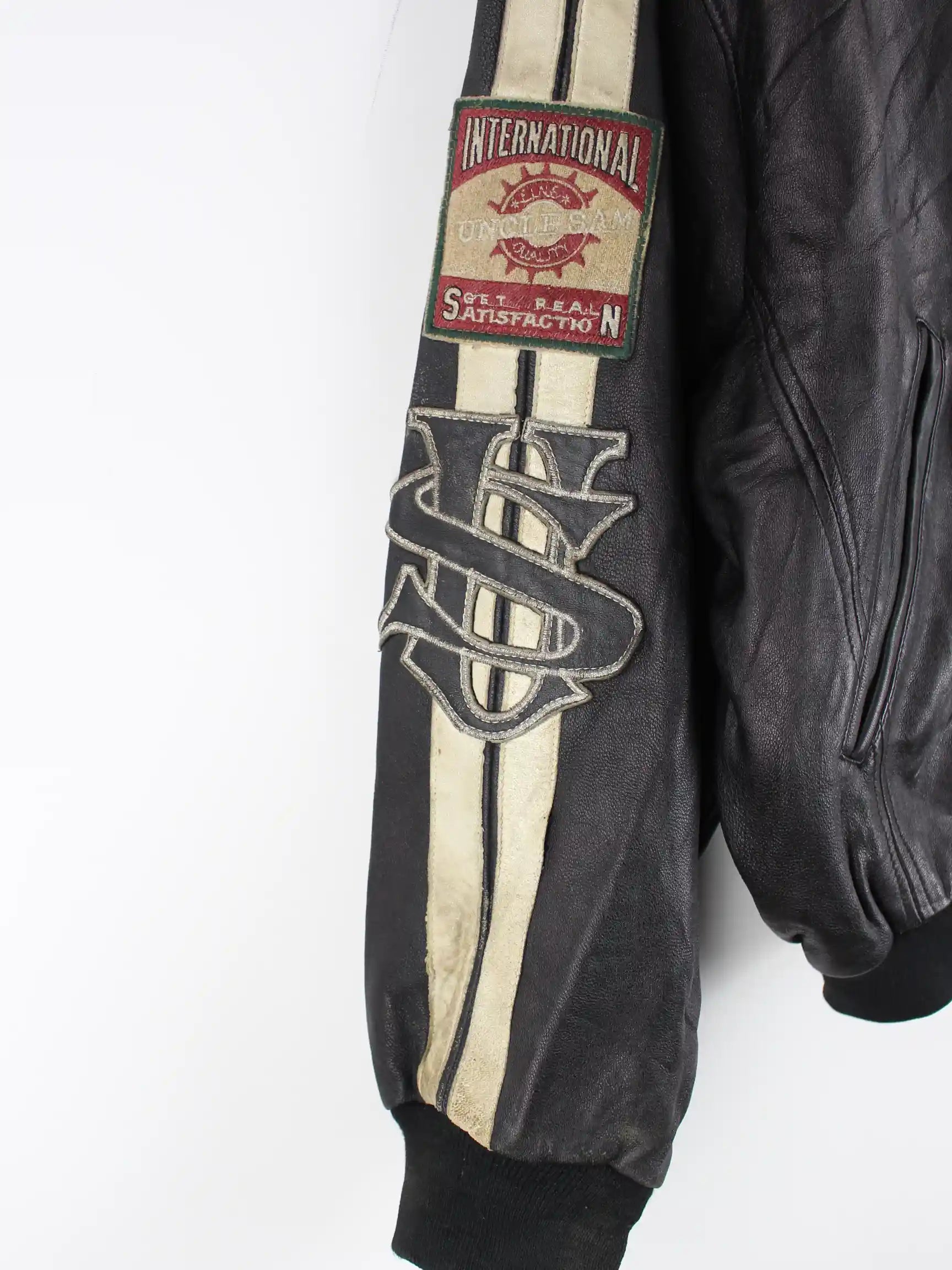 Uncle Sam 90s Vintage Leder Bomber Jacke Schwarz M