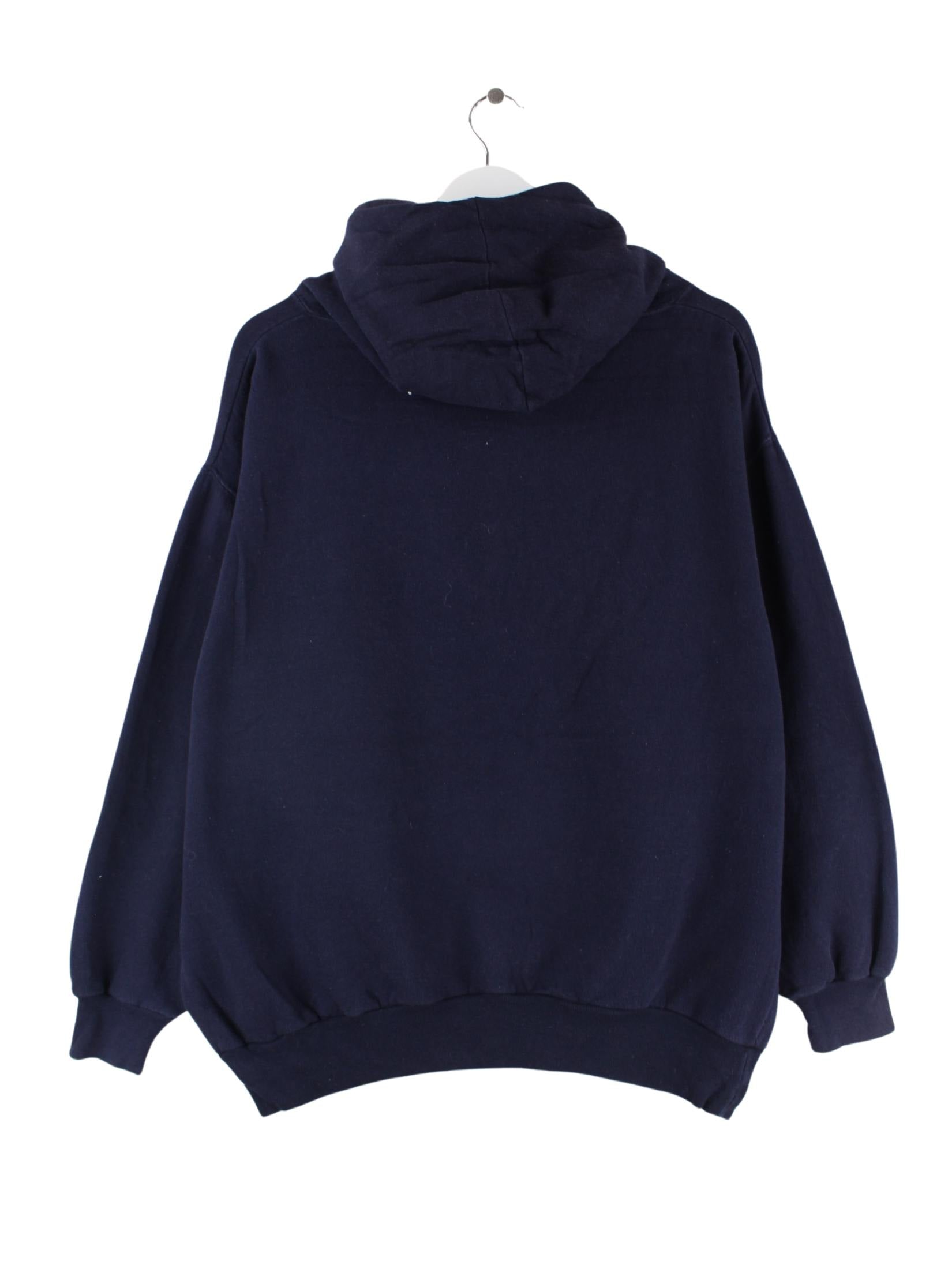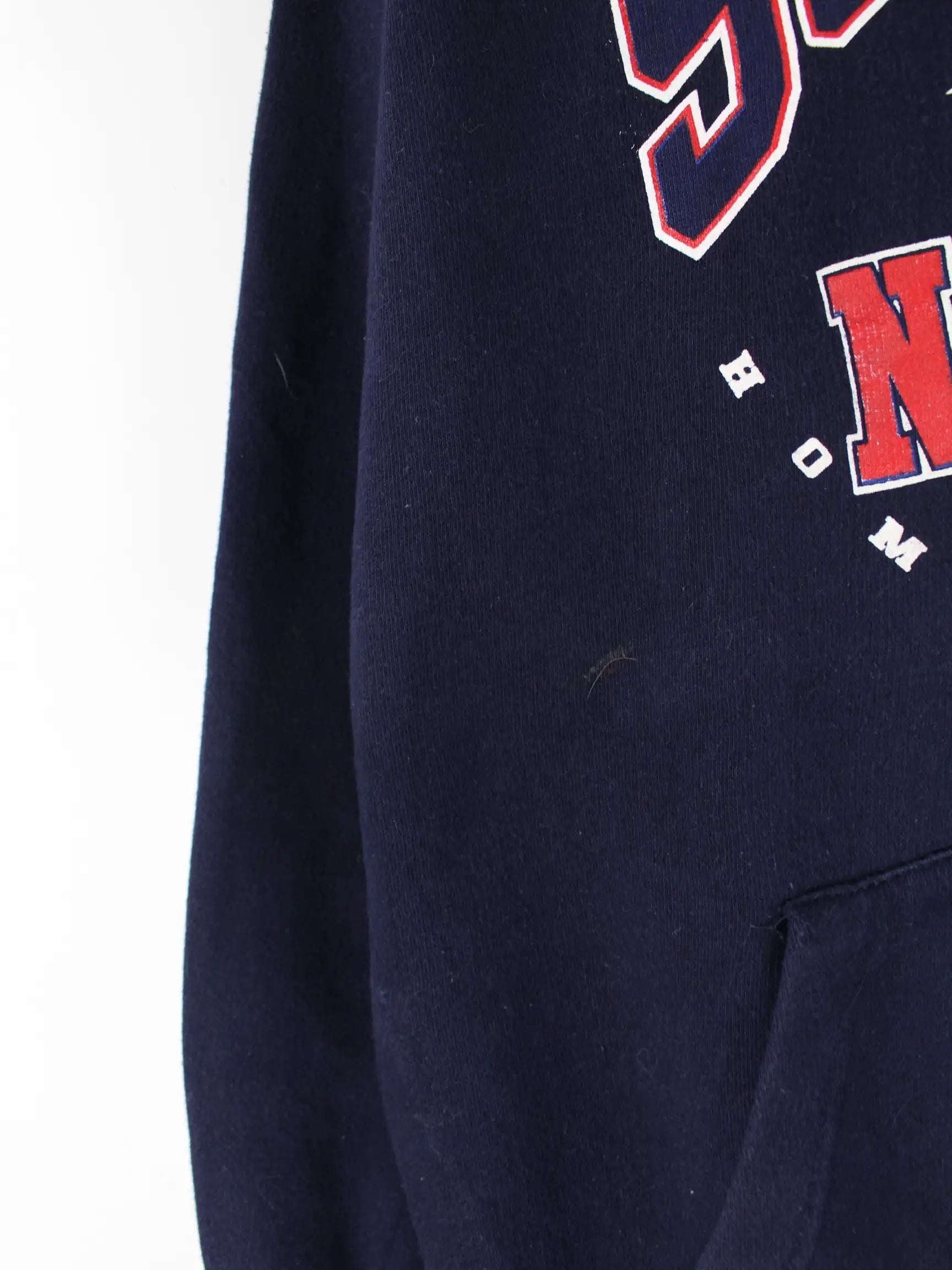 Blauer Vintage Hoodie in Größe L. Er ist aus einer Baumwollmischung gefertigt und in gutem Zustand im Angebot. Mit schönem Patriots Print.