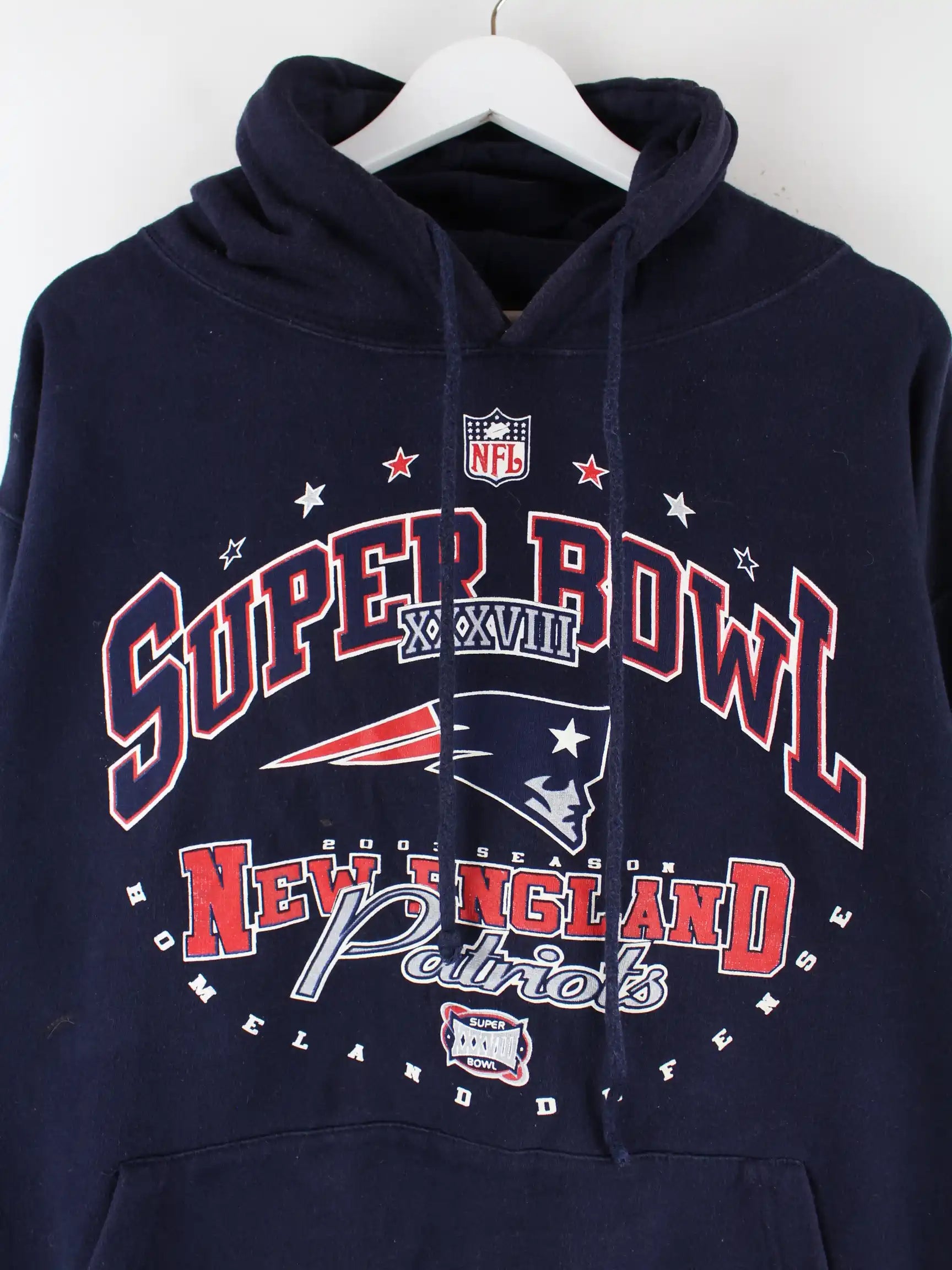 Vintage 2003 NFL New England Patriots Print Hoodie Blau L