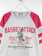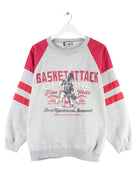 Grauer Vintage Sweater aus den 90'ern in Größe M. Er ist aus einer Baumwollmischung angefertigt und in sehr gutem Zustand zu haben. Mit schönem Basketball Print.