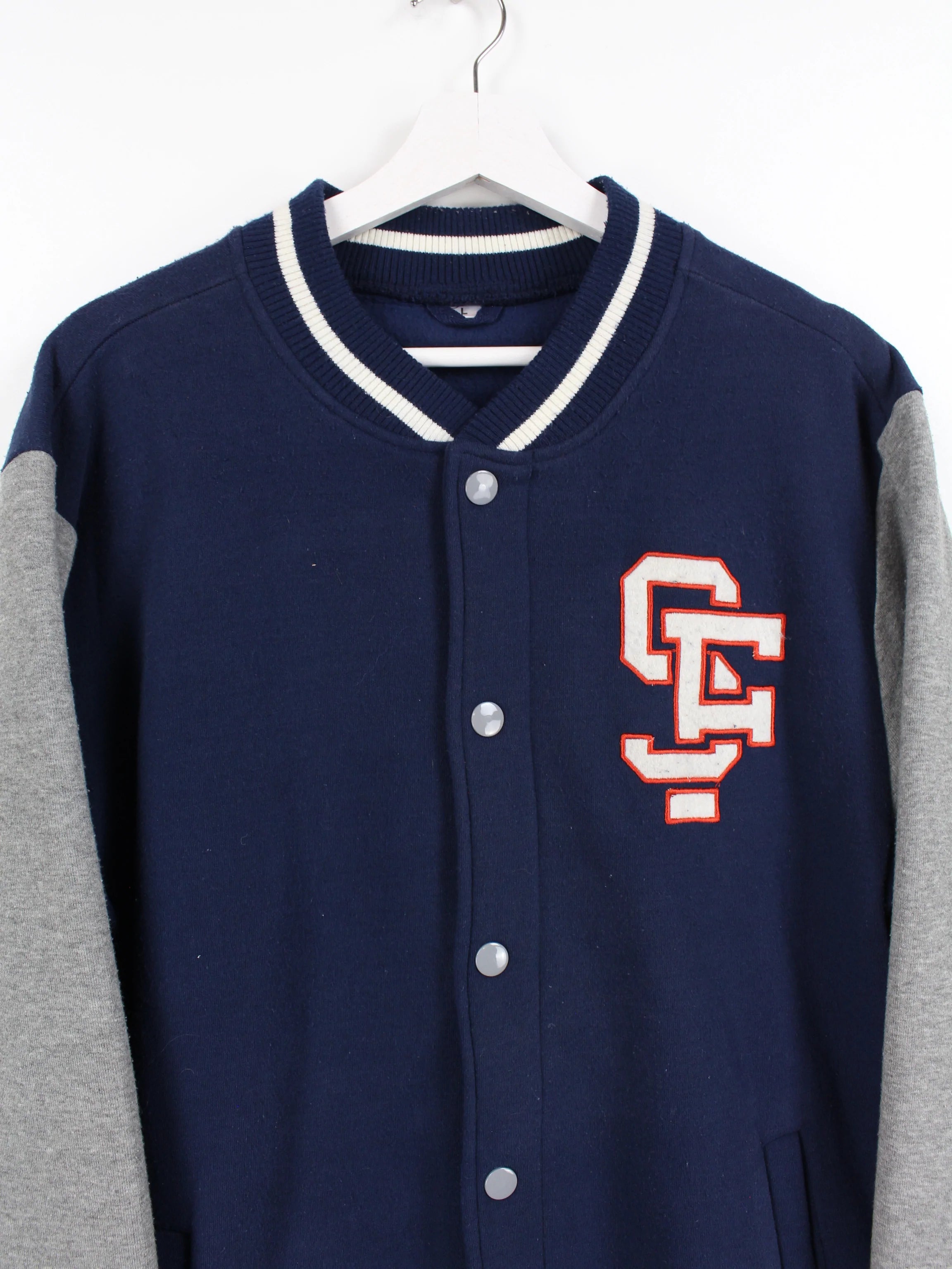 Blaue Collegejacke aus angenehmem Sweater Stoff.
