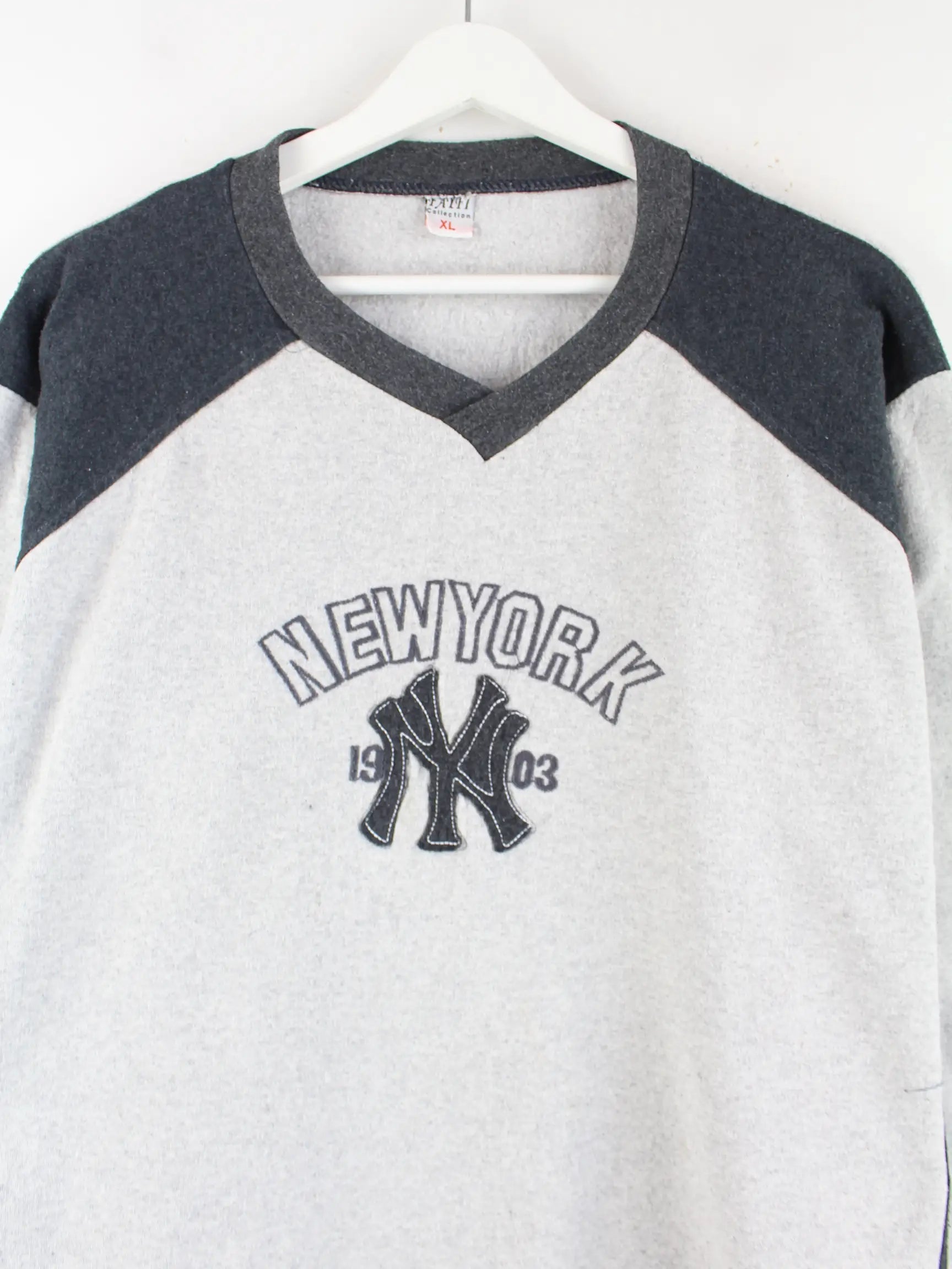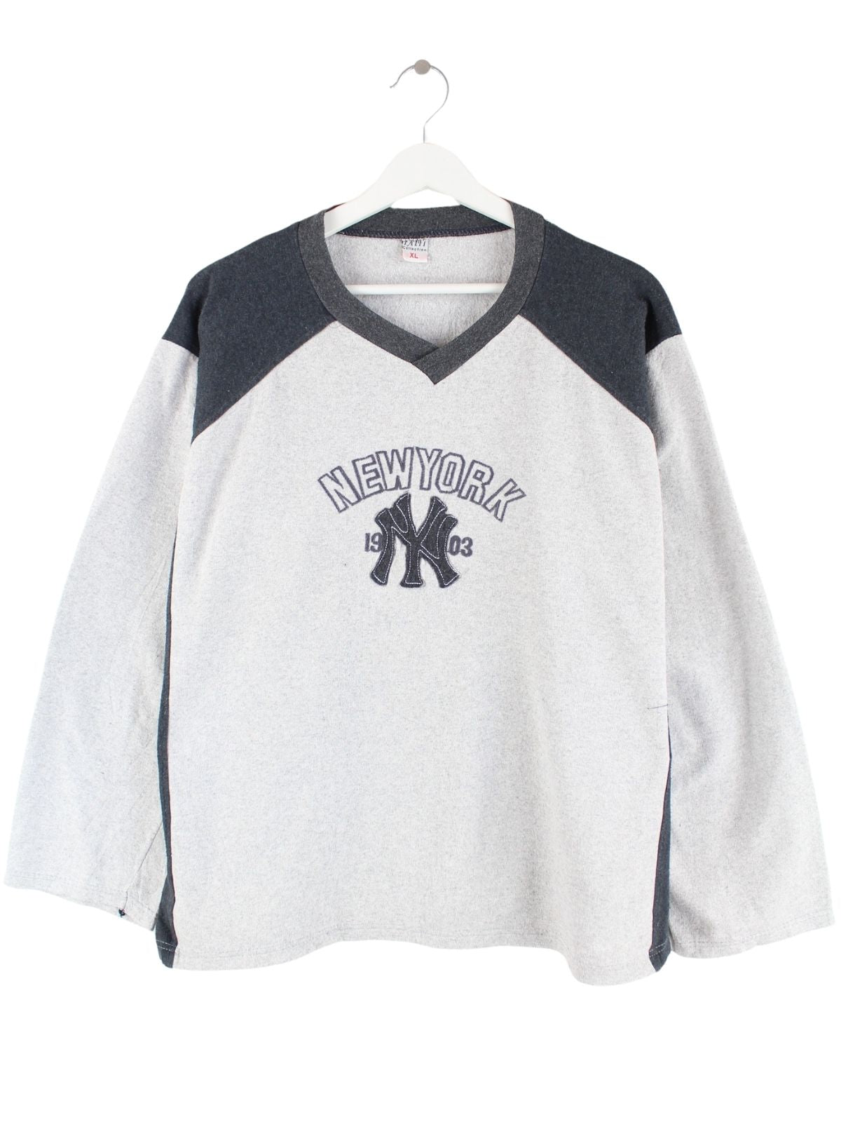 Vintage Damen 90s NY Yankees Embroidered V-Neck Sweatshirt Grau XL