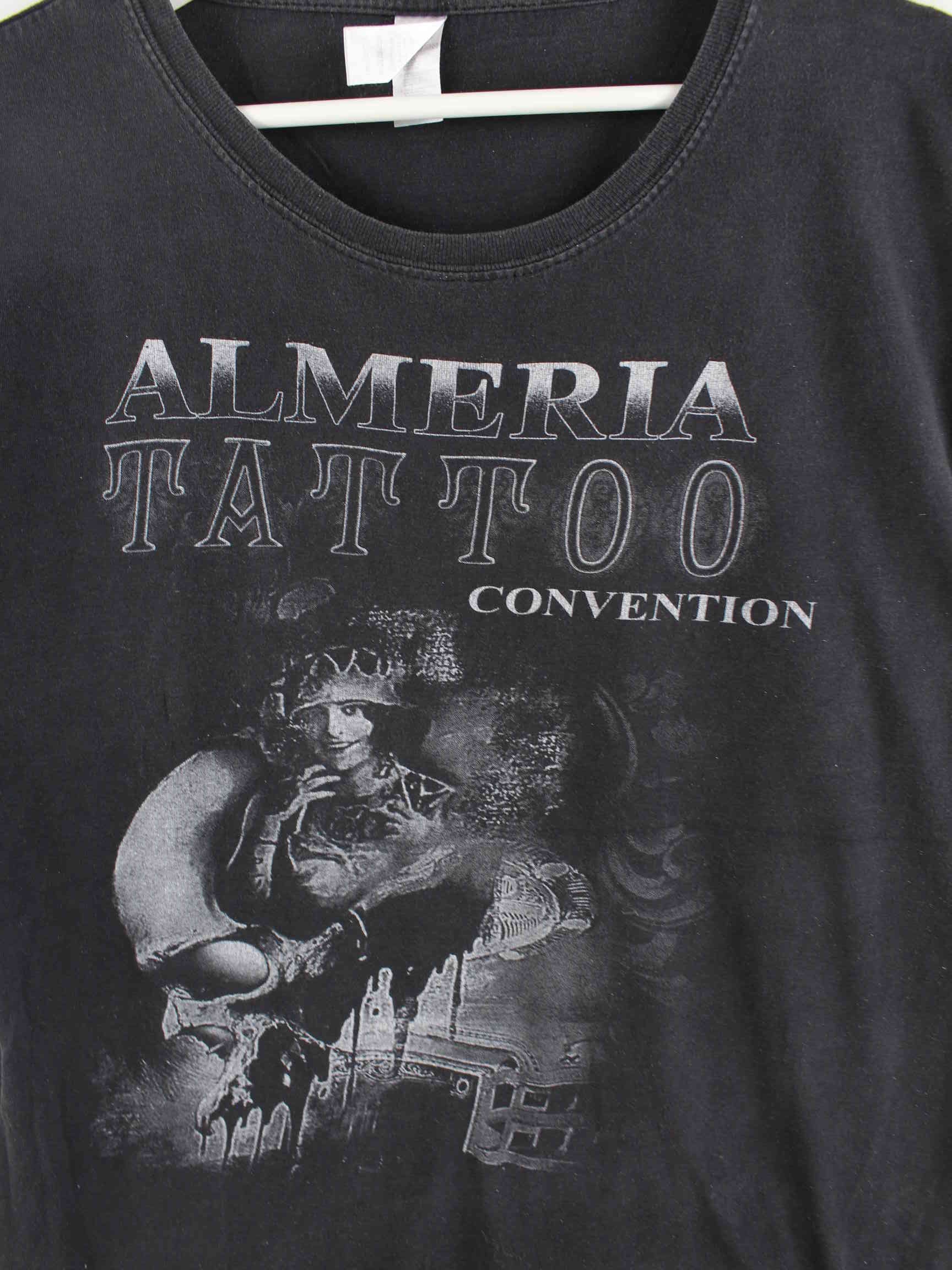 Vintage Damen Tattoo Print T-Shirt Schwarz XL