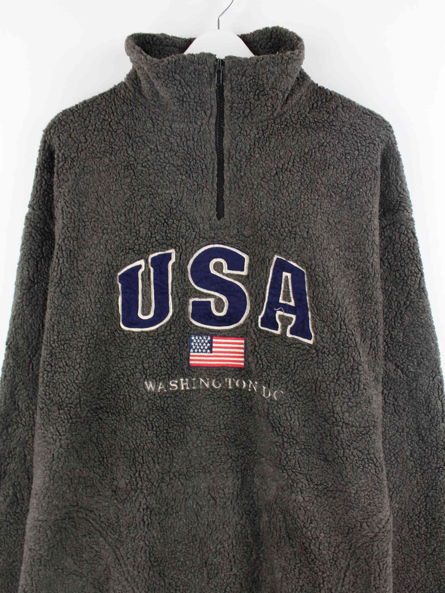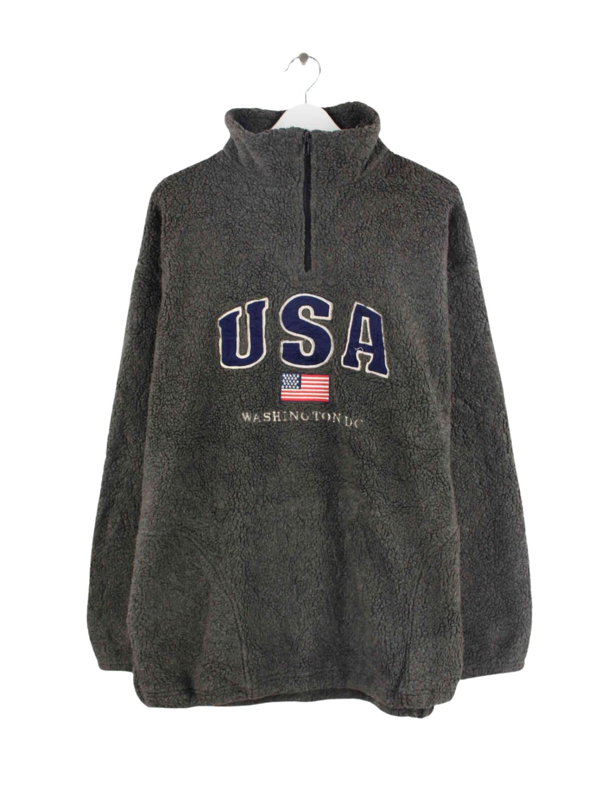 Vintage Half Zip Embroidered Fleece Sweater Grau XL