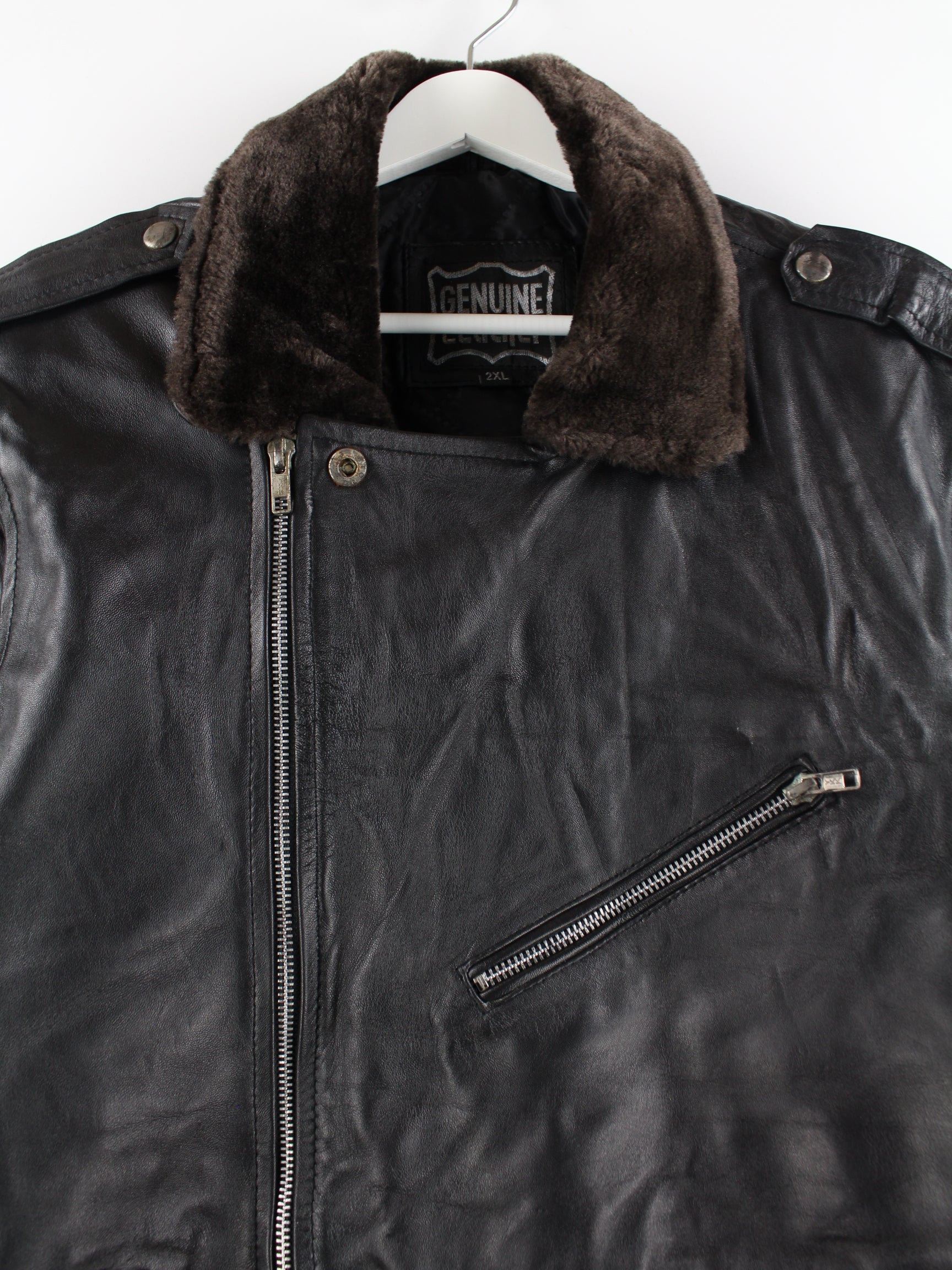 Vintage Leder Jacke Schwarz XL