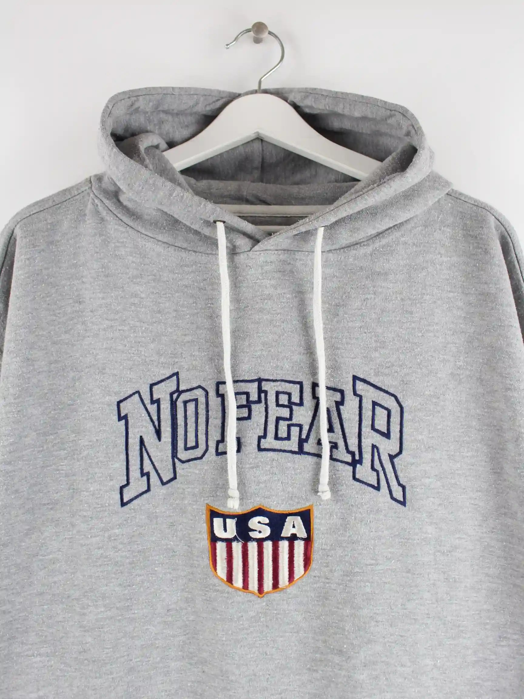 Grauer Vintage Hoodie in Größe L. Er ist aus einer Baumwollmischung gefertigt und in sehr gutem Zustand zu bekommen.