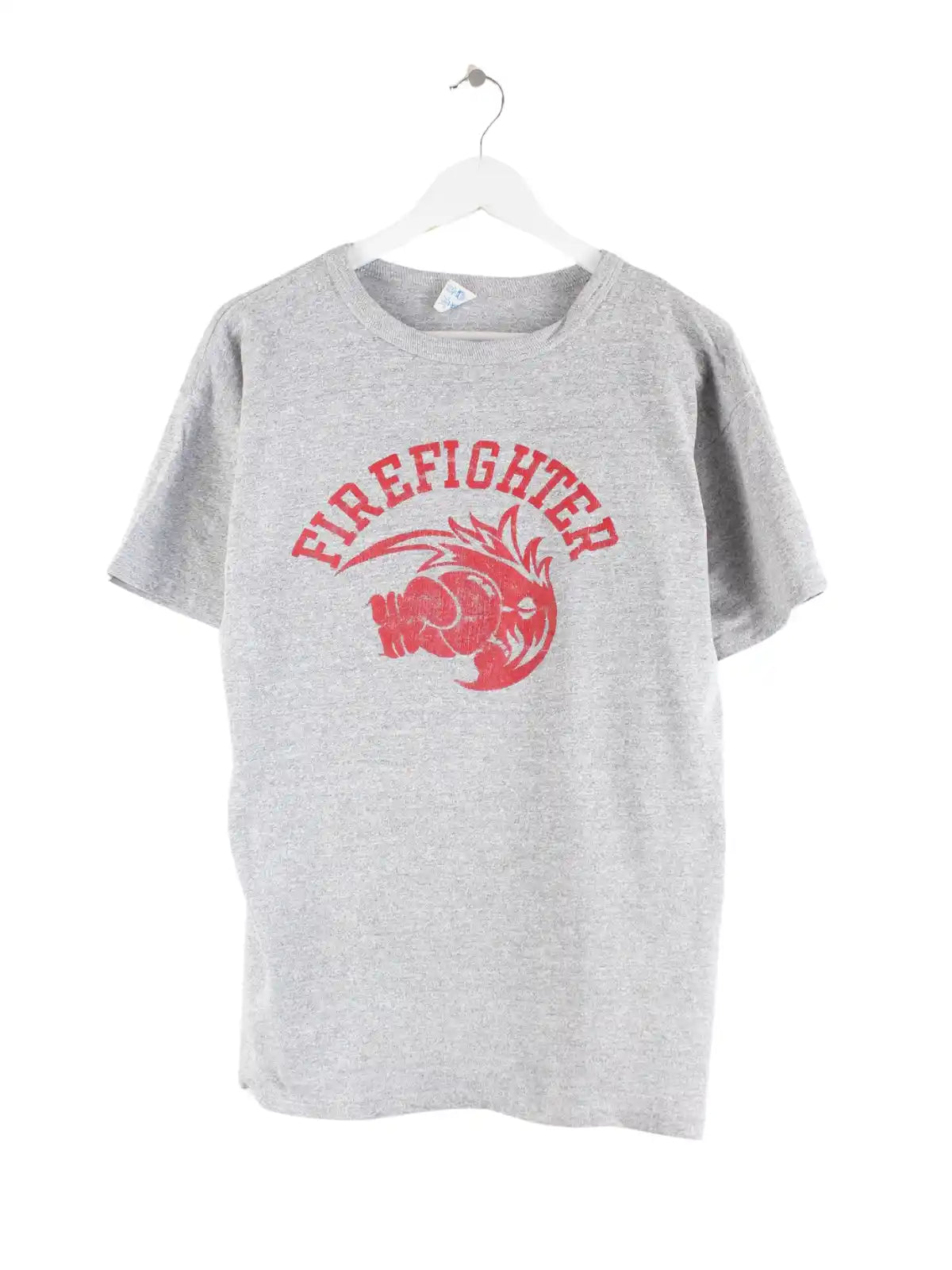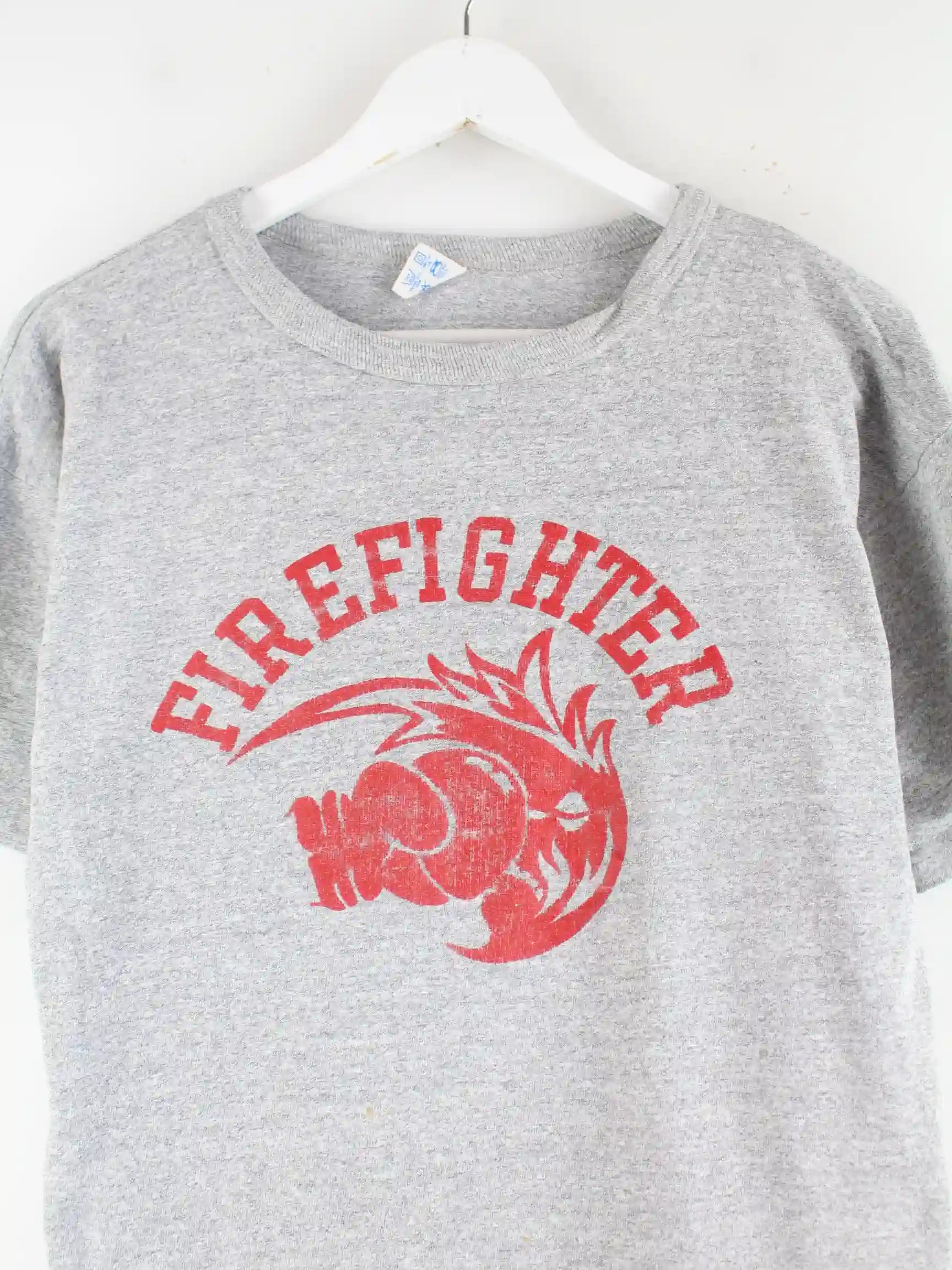 Champion 90s Vintage Firefighter Single Stitch T-Shirt Grau M