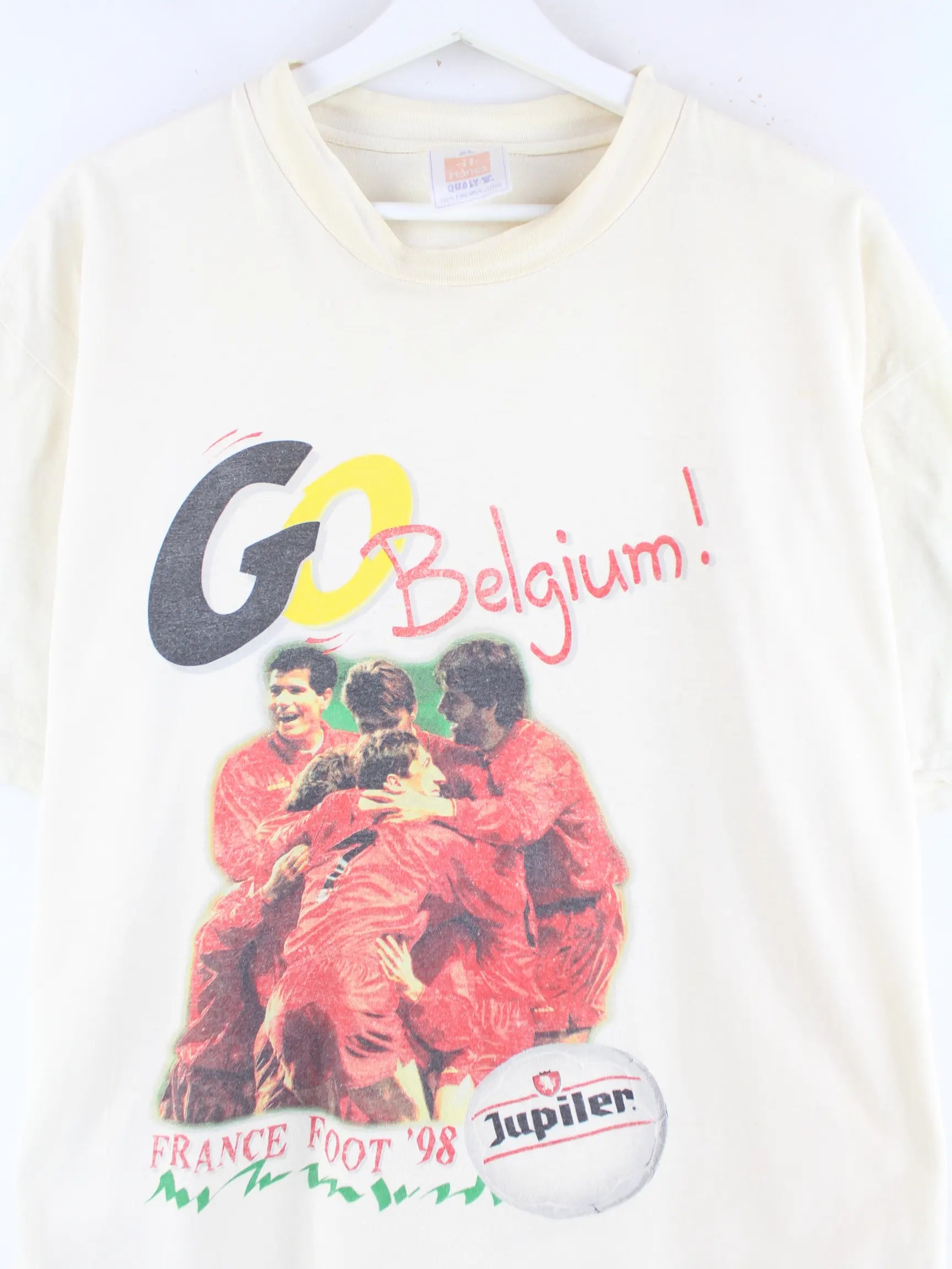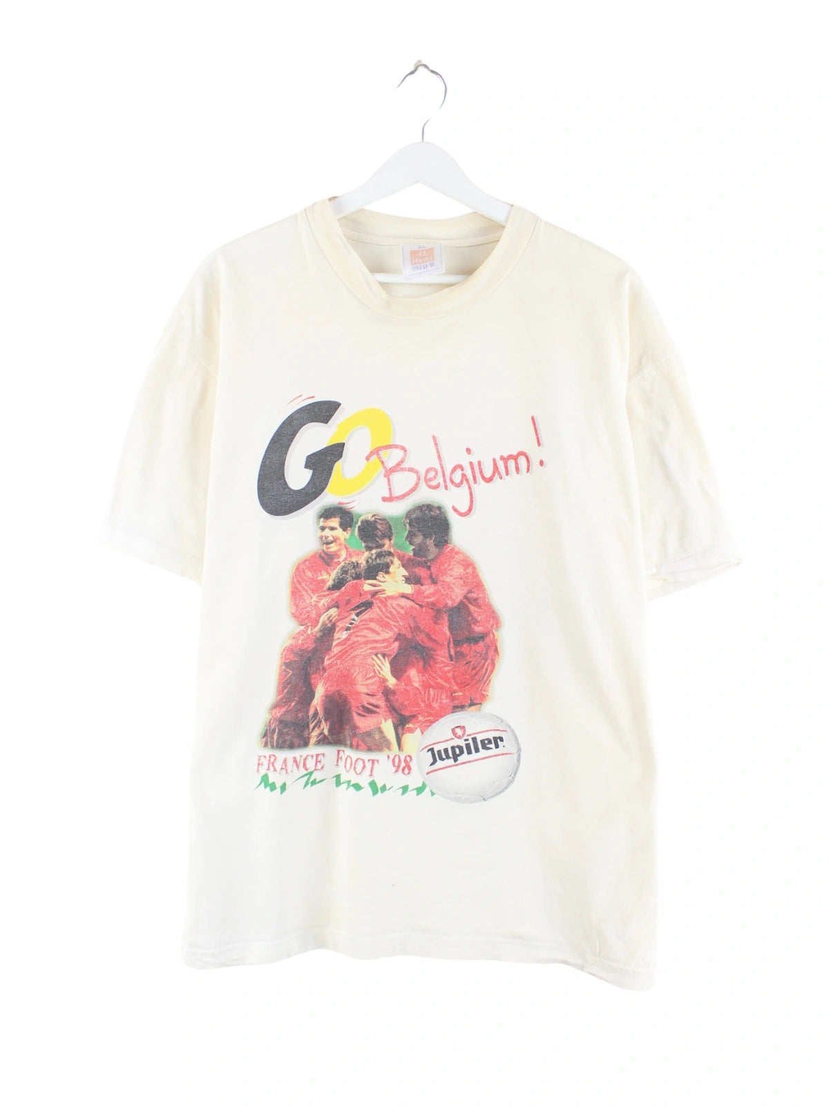 Hanes 1998 Vintage Belgium Print T-Shirt Beige XL
