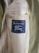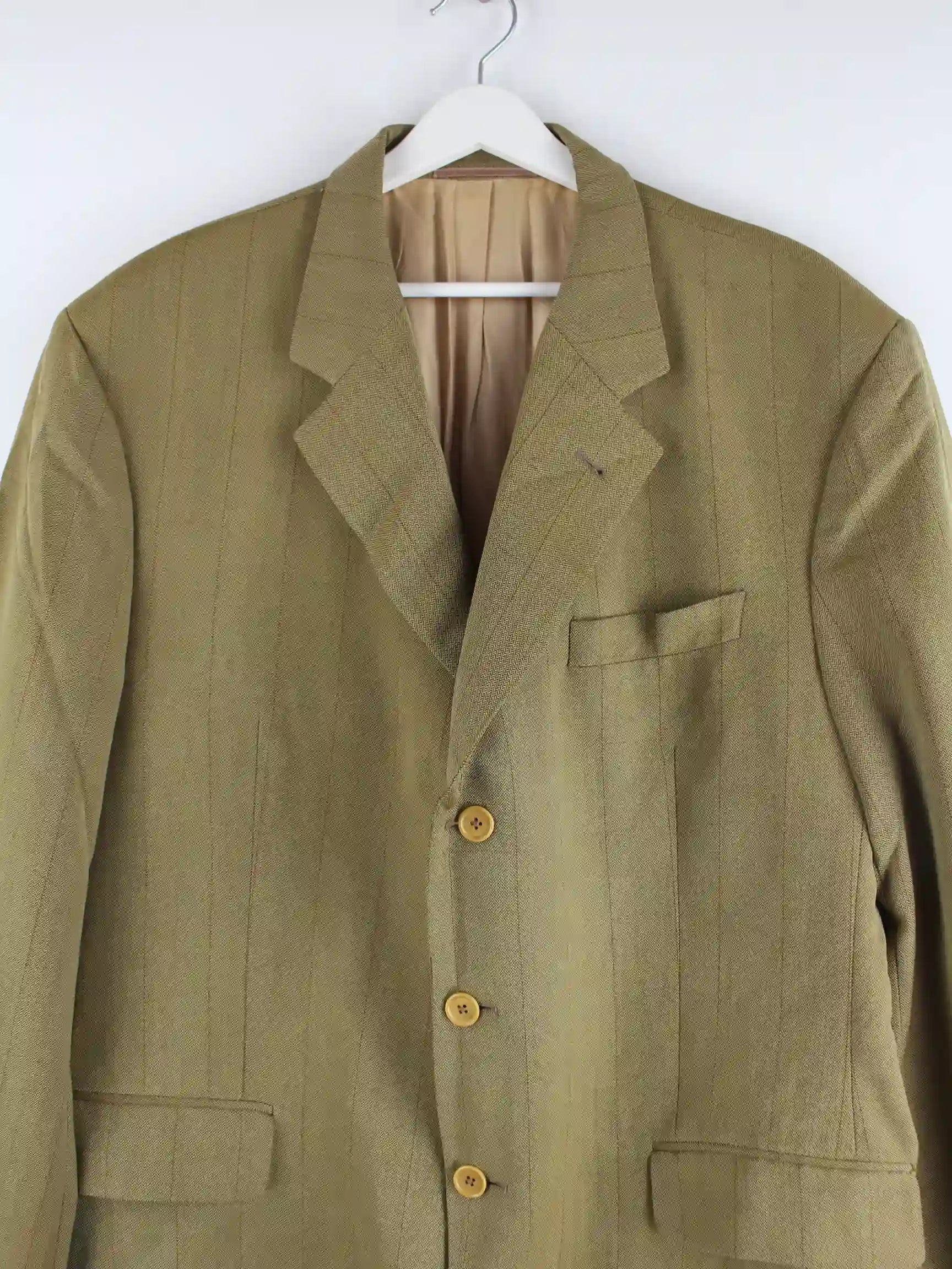 Grüner Blazer von Burberry aus den 90'ern in Größe L. Er ist aus einer Wollmischung angefertigt und in sehr gutem Zustand in Stock.