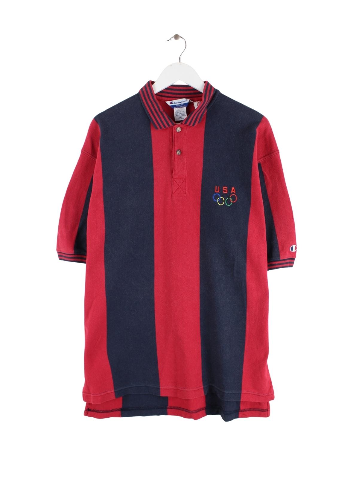 Champion 1996 Vintage Olympia Atlanta Striped Polo Rot L