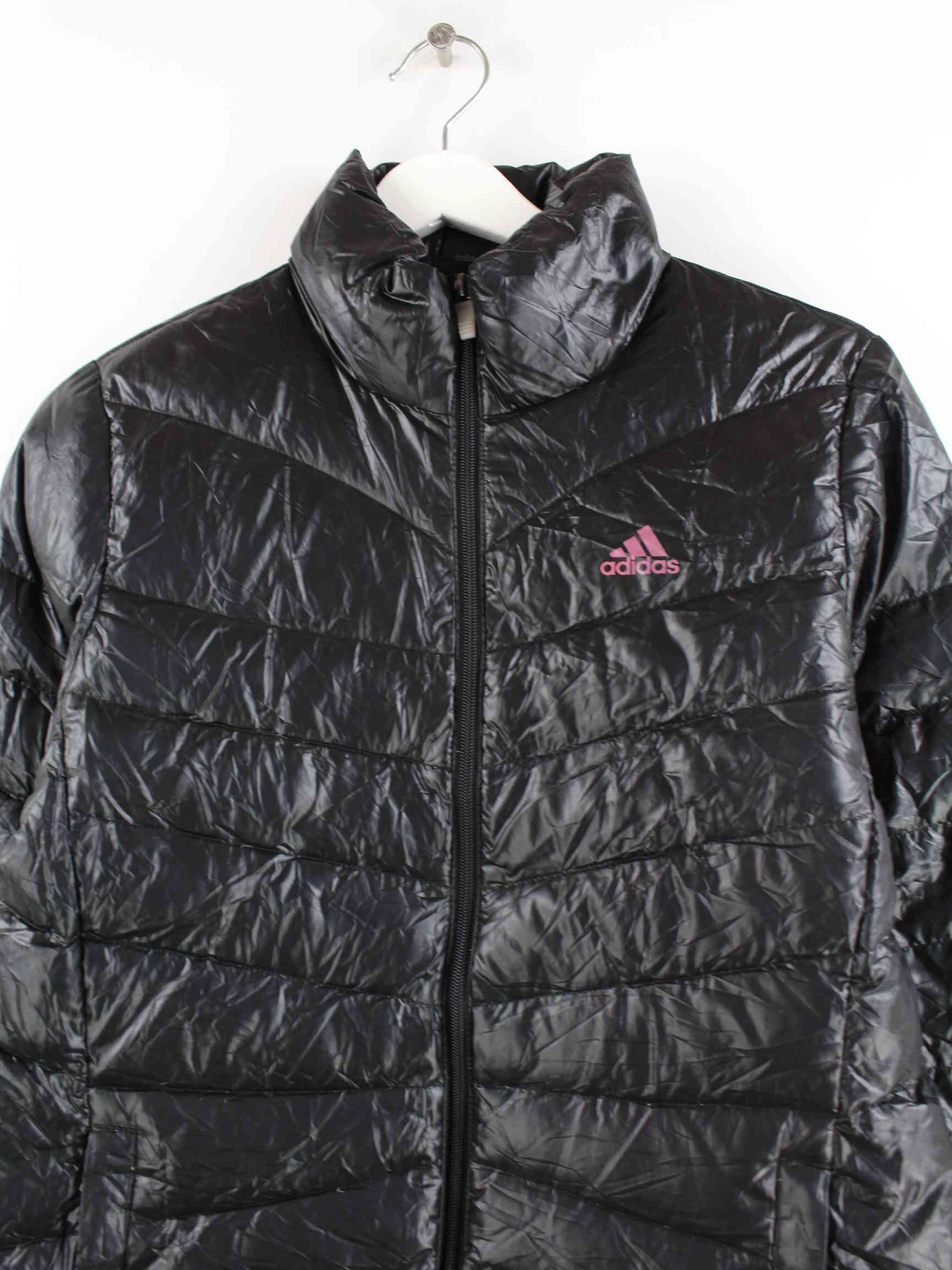 Jacke des Labels Adidas in Größe M. Sie ist aus Synthetik angefertigt und in Schwarz zu haben.