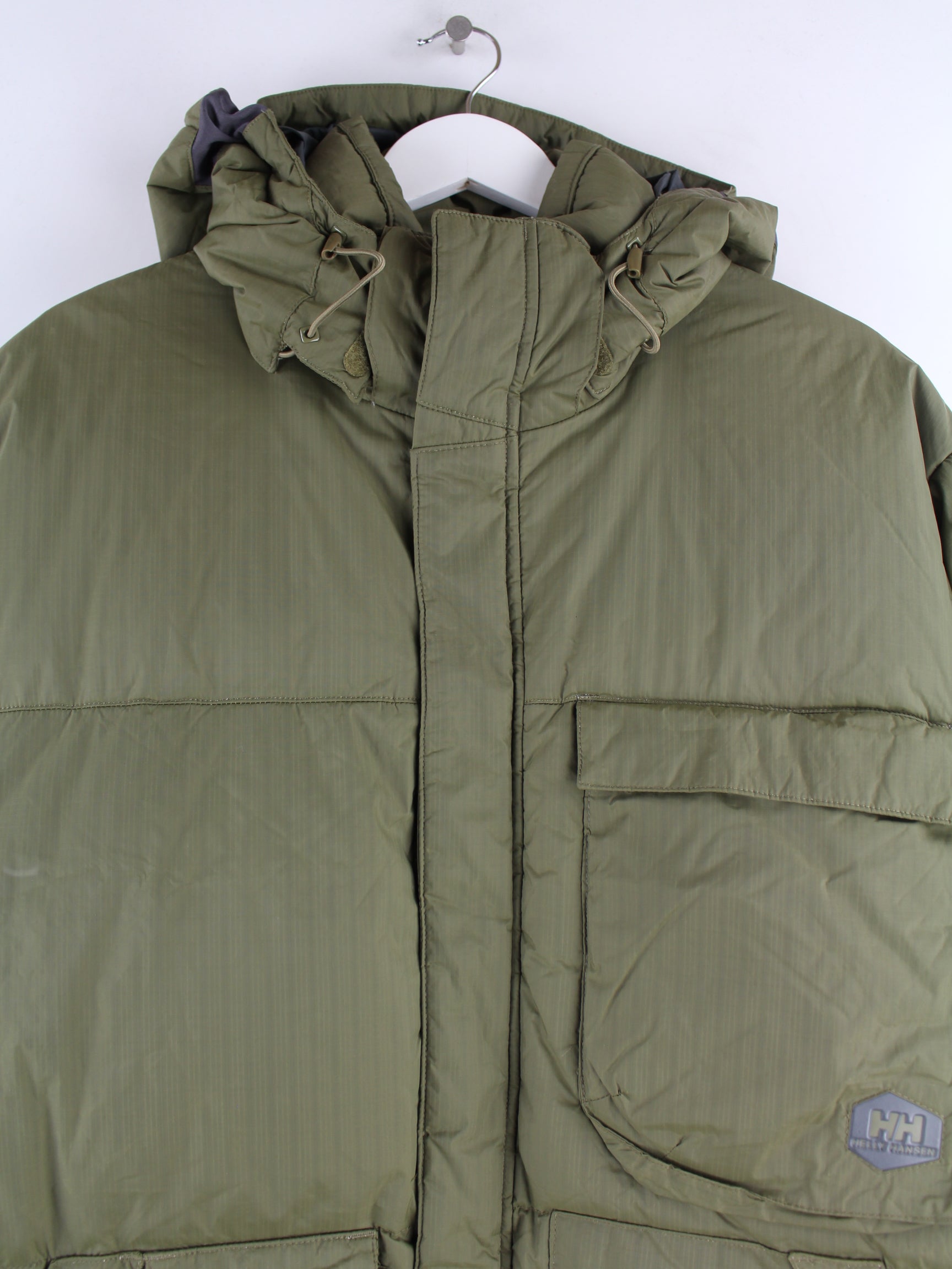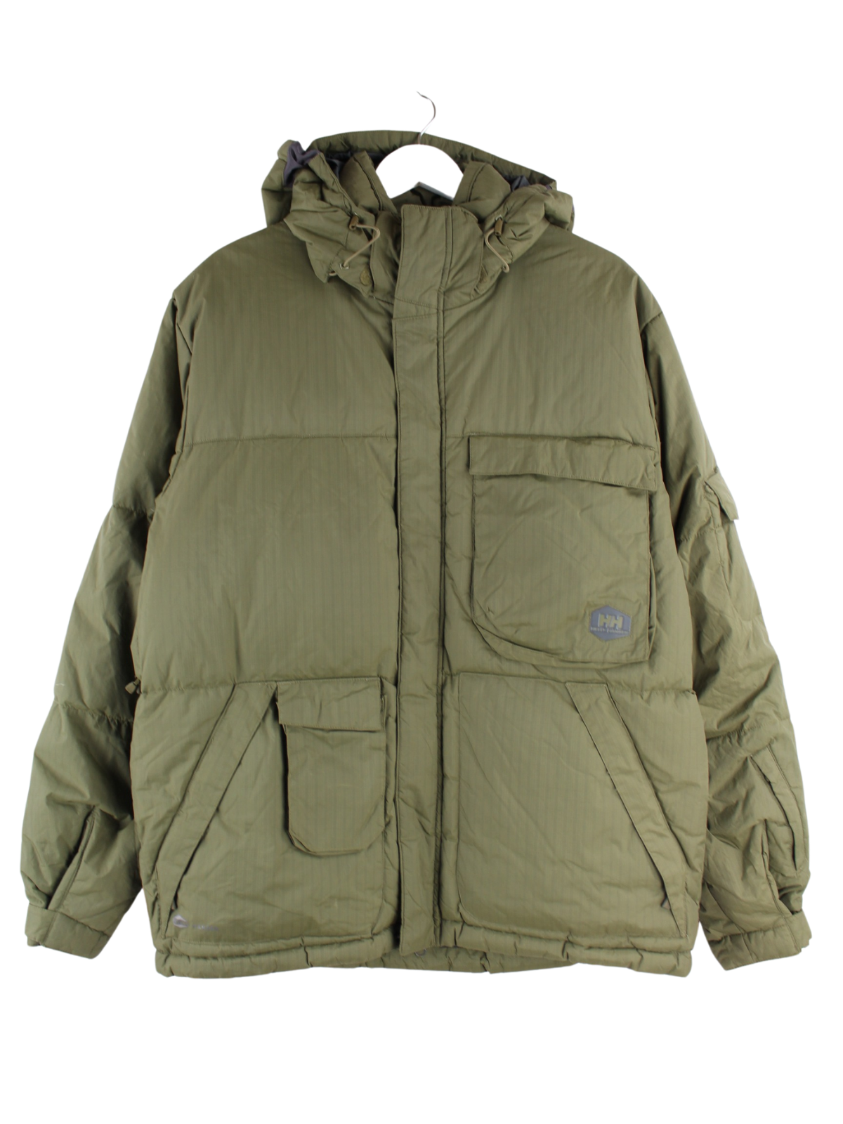 Grüne Jacke vom Label Helly Hansen in Größe XL. Sie ist aus Synthetik gemacht. Den Zustand würden wir als 'In Ordnung' bezeichnen (vergl. Bilder).