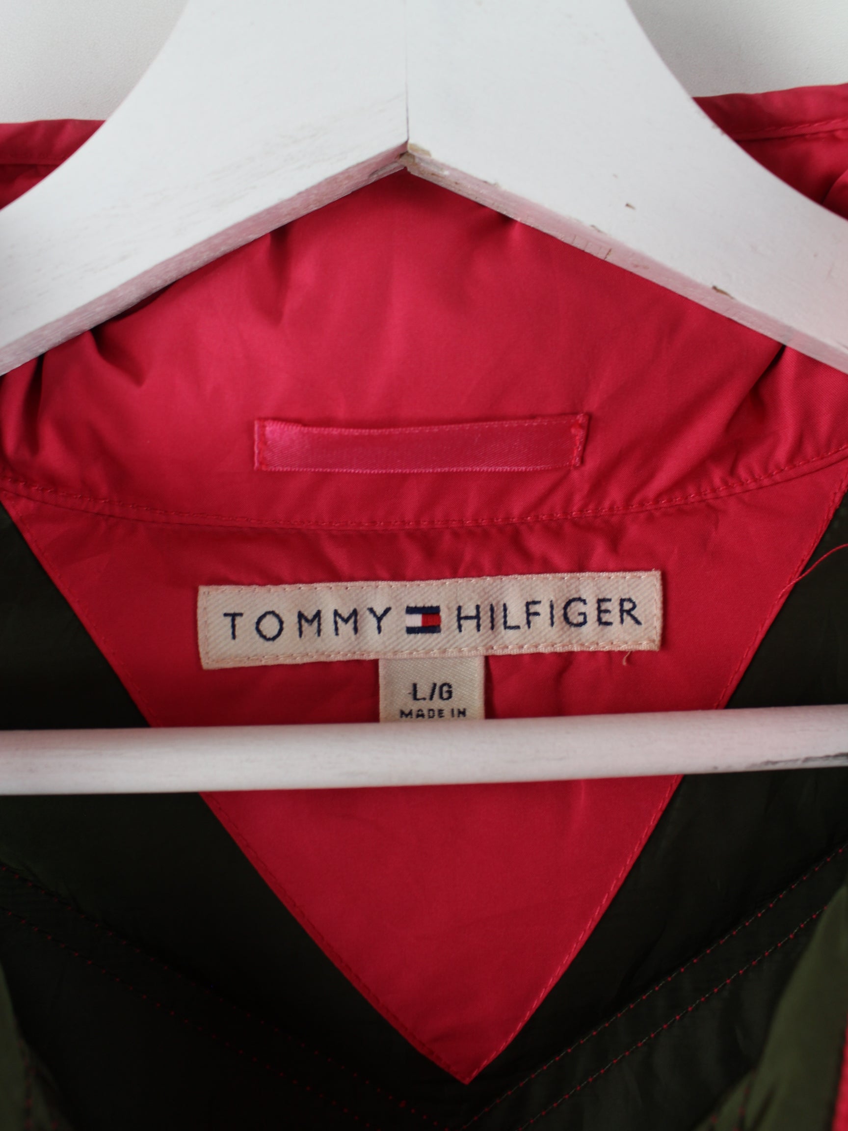 Pinkfarbene Jacke der Brand Tommy Hilfiger in Größe L. Sie ist aus Synthetik hergestellt. Den Zustand würden wir als 'In Ordnung' bezeichnen (vergl. Bilder).