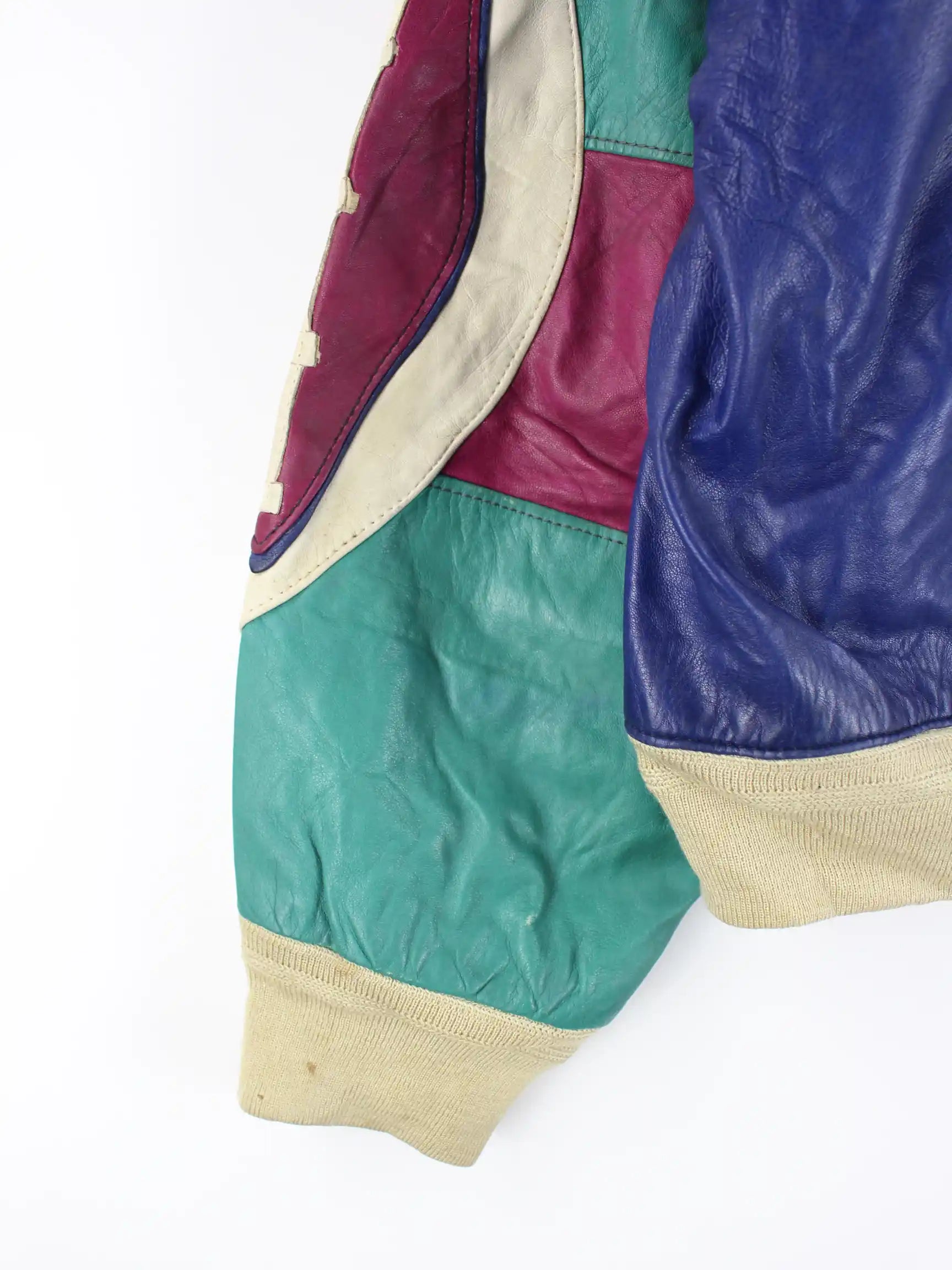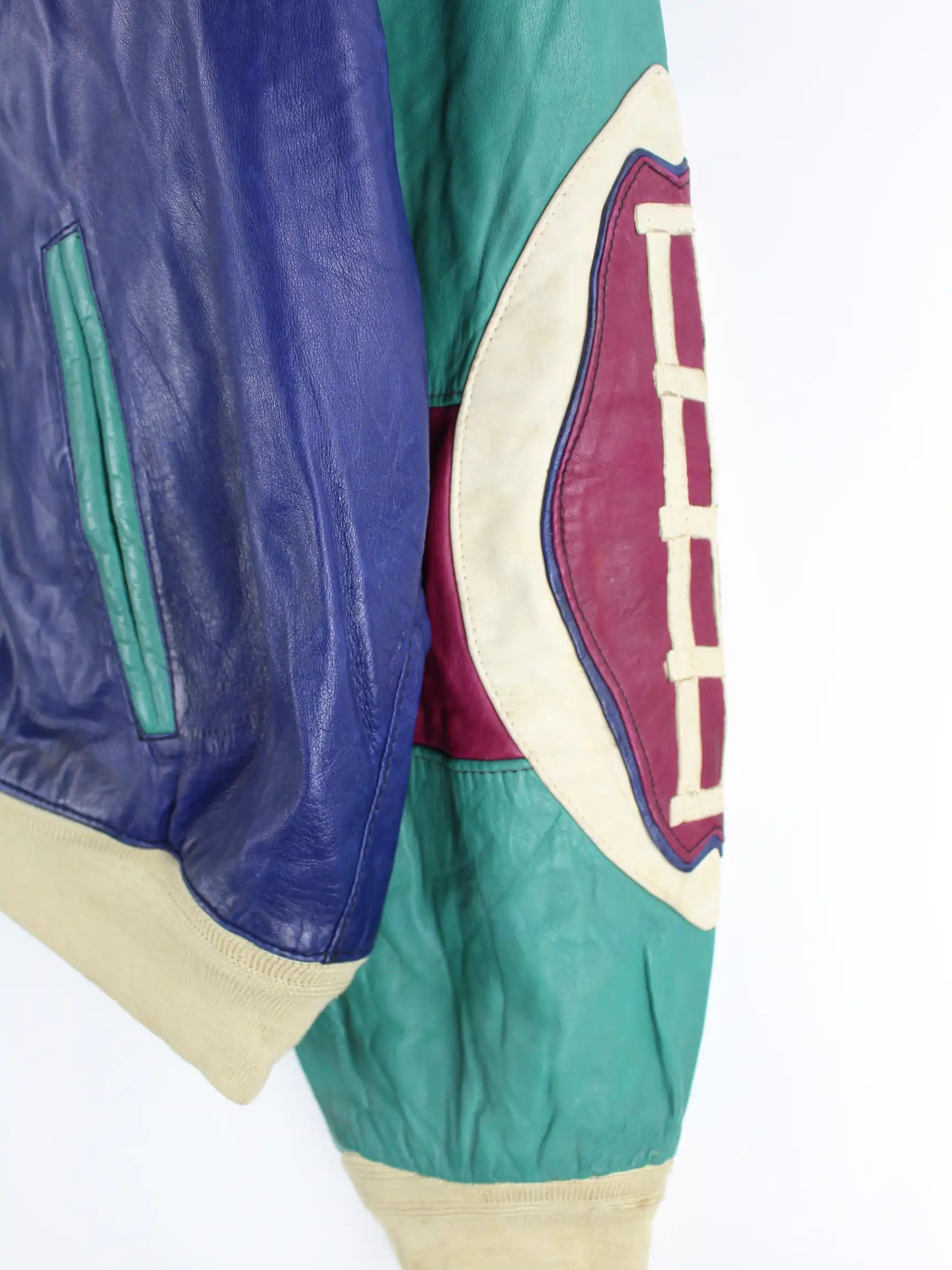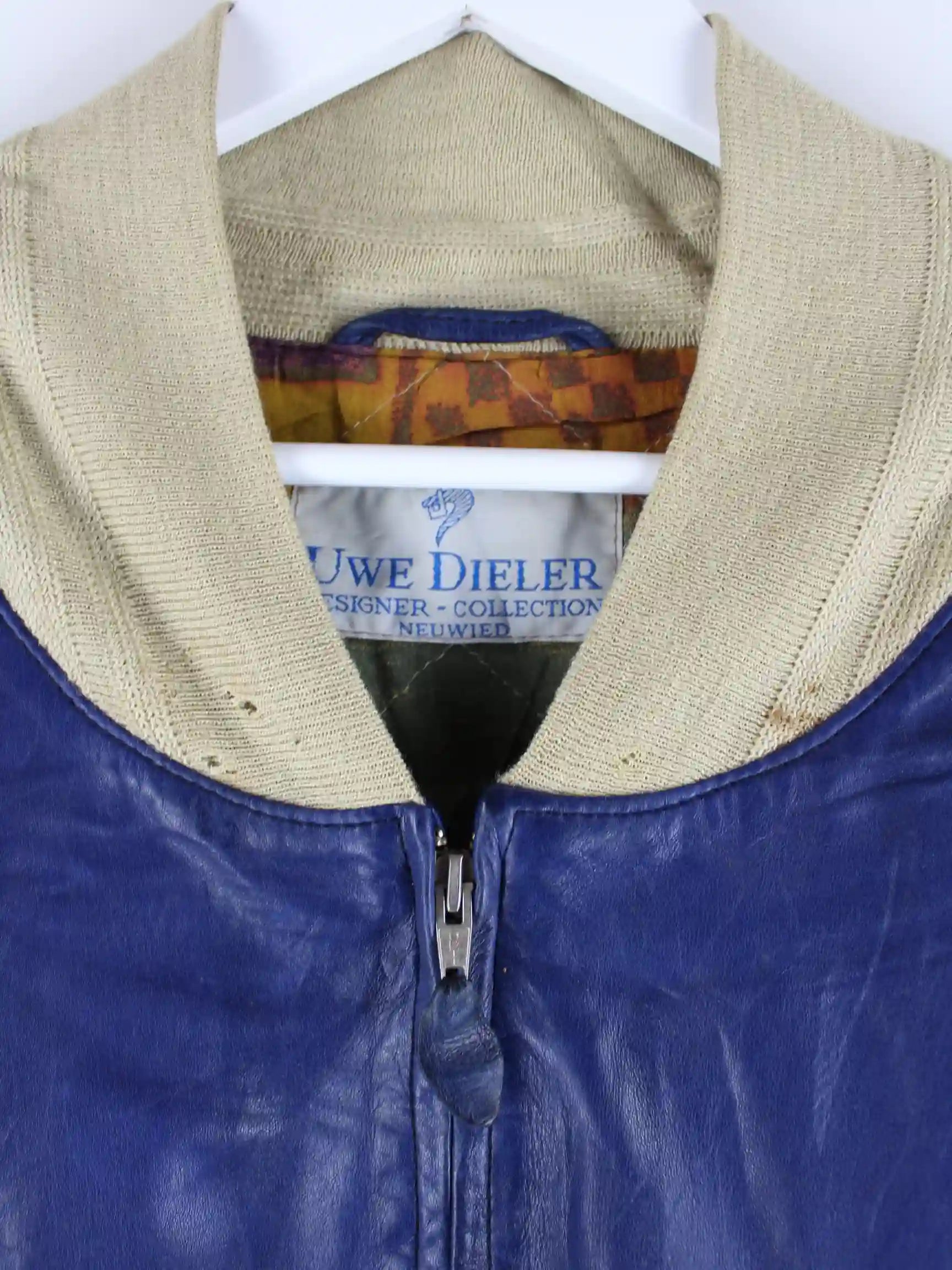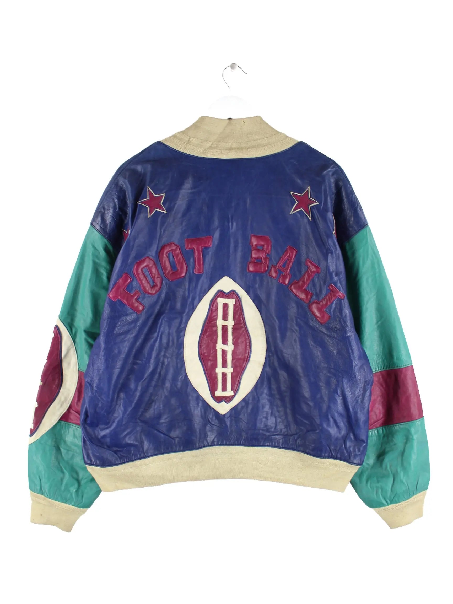 Vintage 70s Uwe Dieler Football Leder Varsity Jacke Blau M