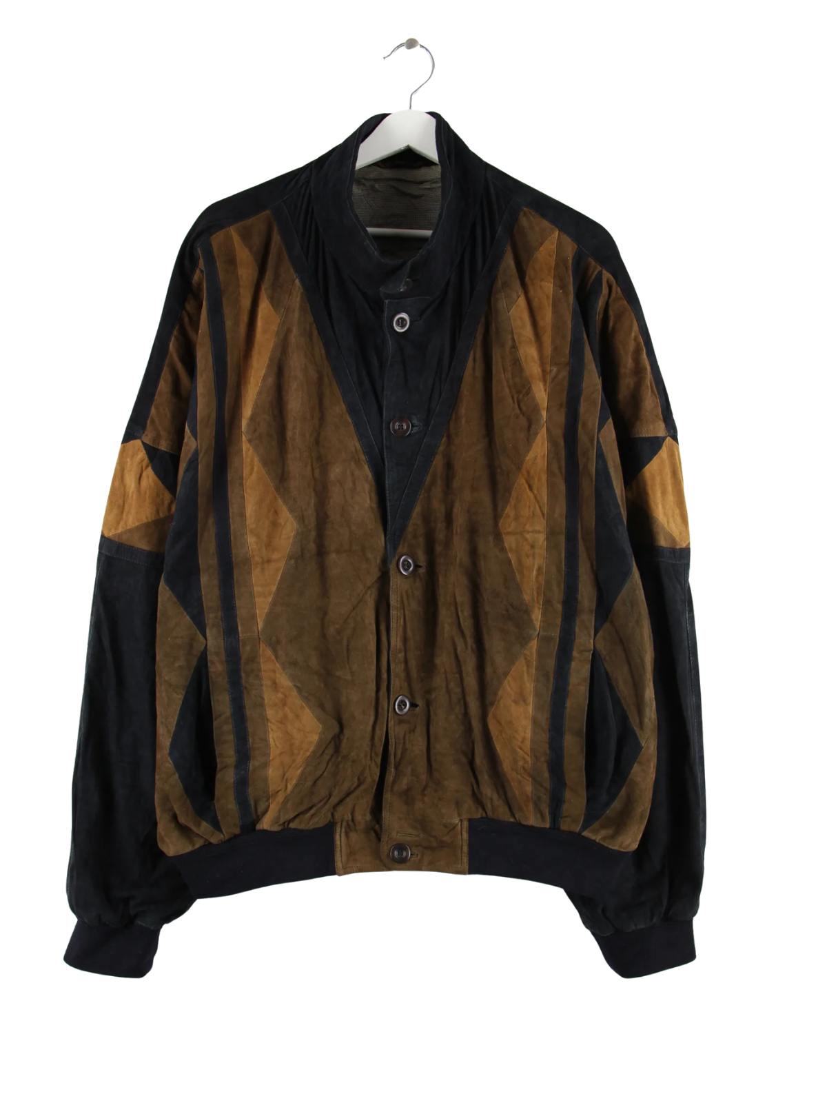 Vintage Jacke in Größe XXL aus den 90'ern. Sie ist aus Leder und in Braun in Stock.