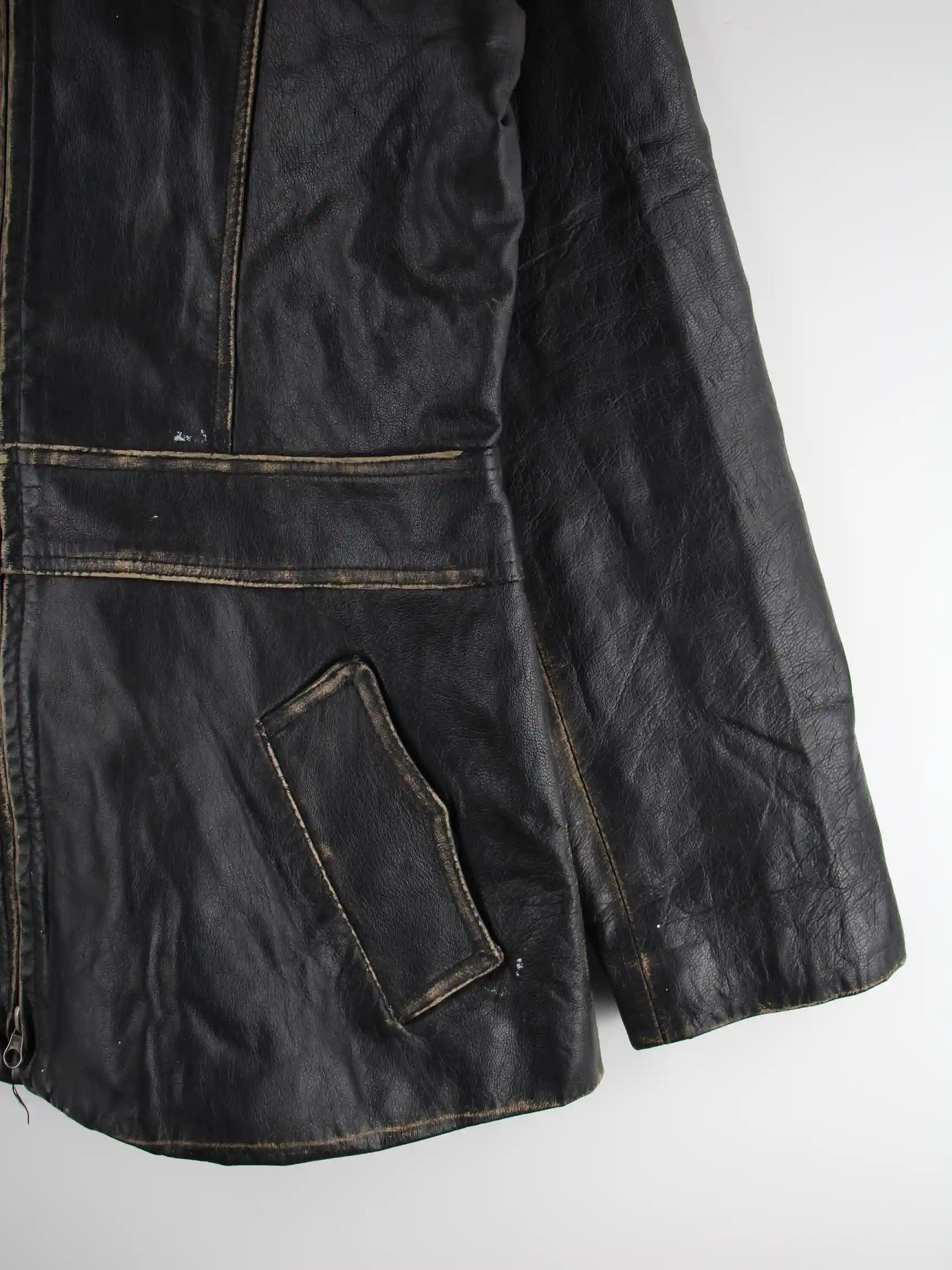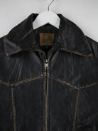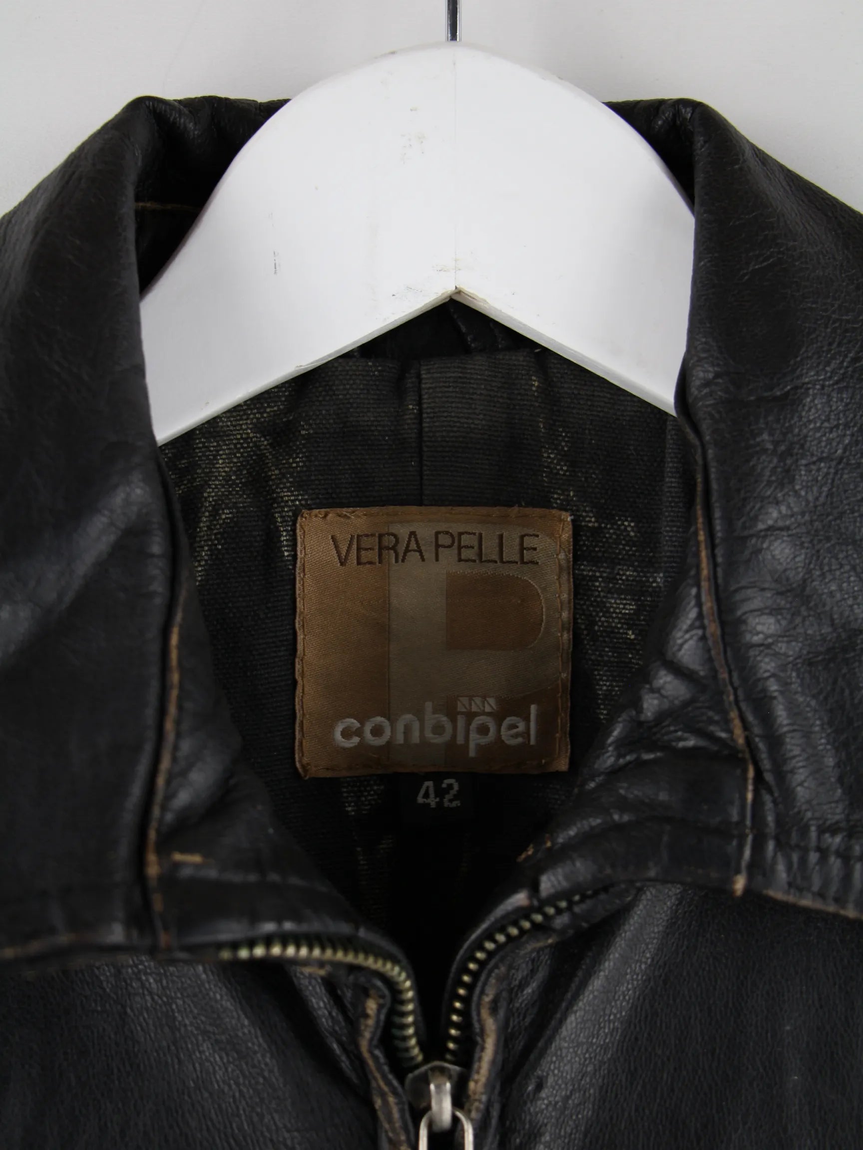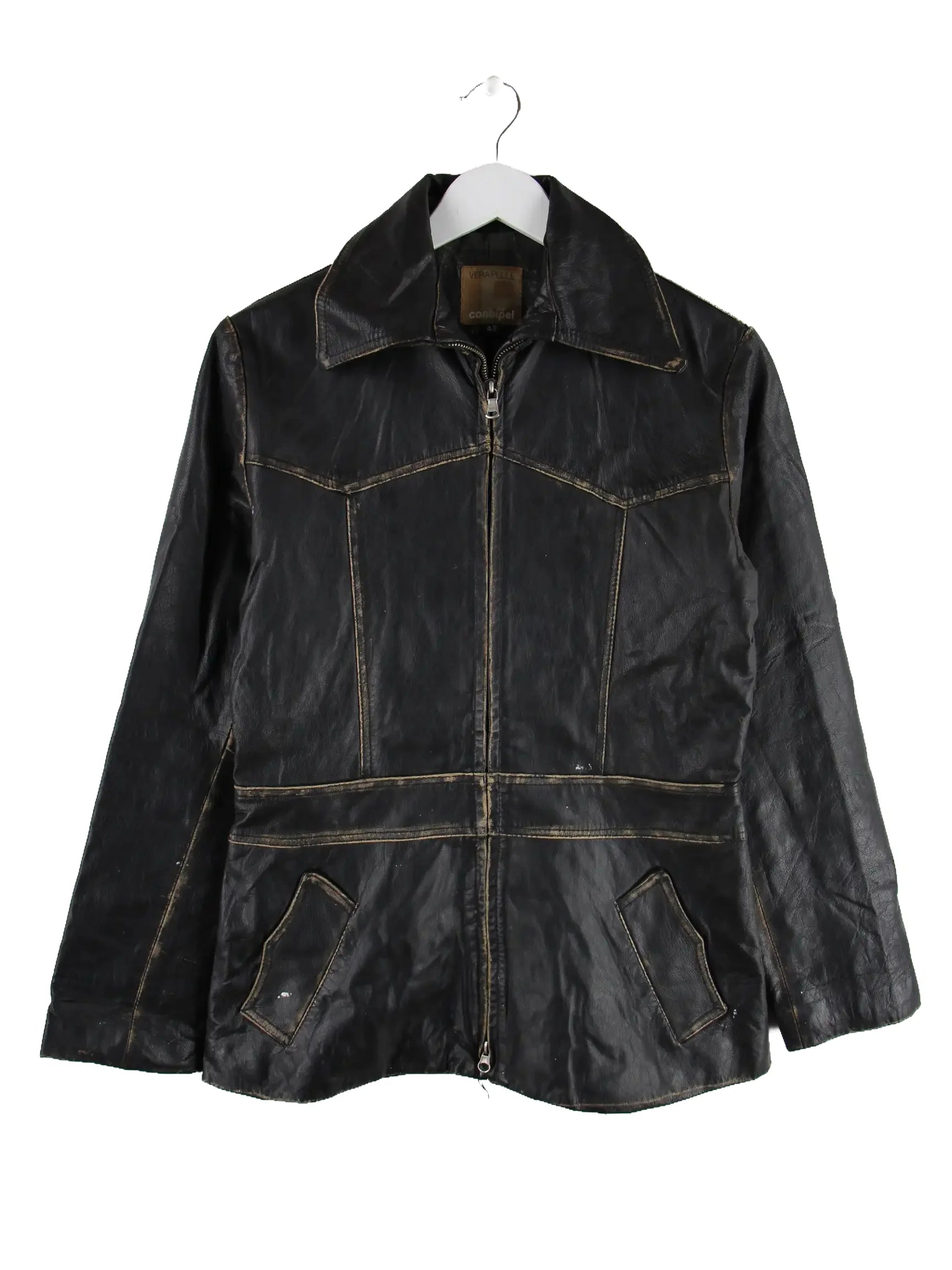Vintage Jacke in Größe L. Sie ist aus Leder gemacht und in Schwarz vorrätig.