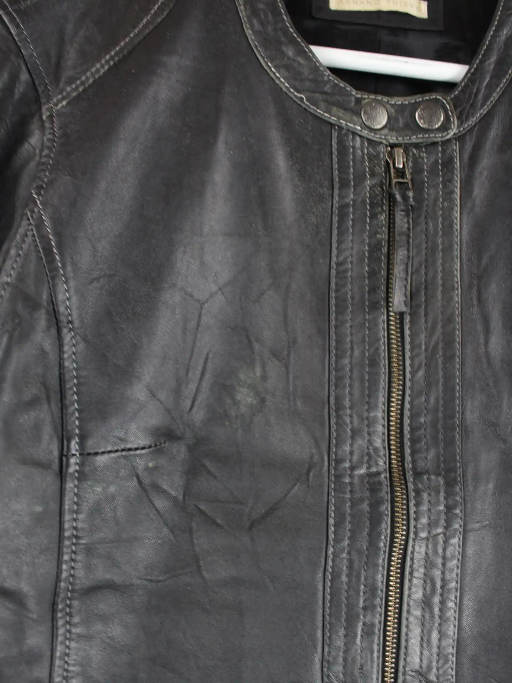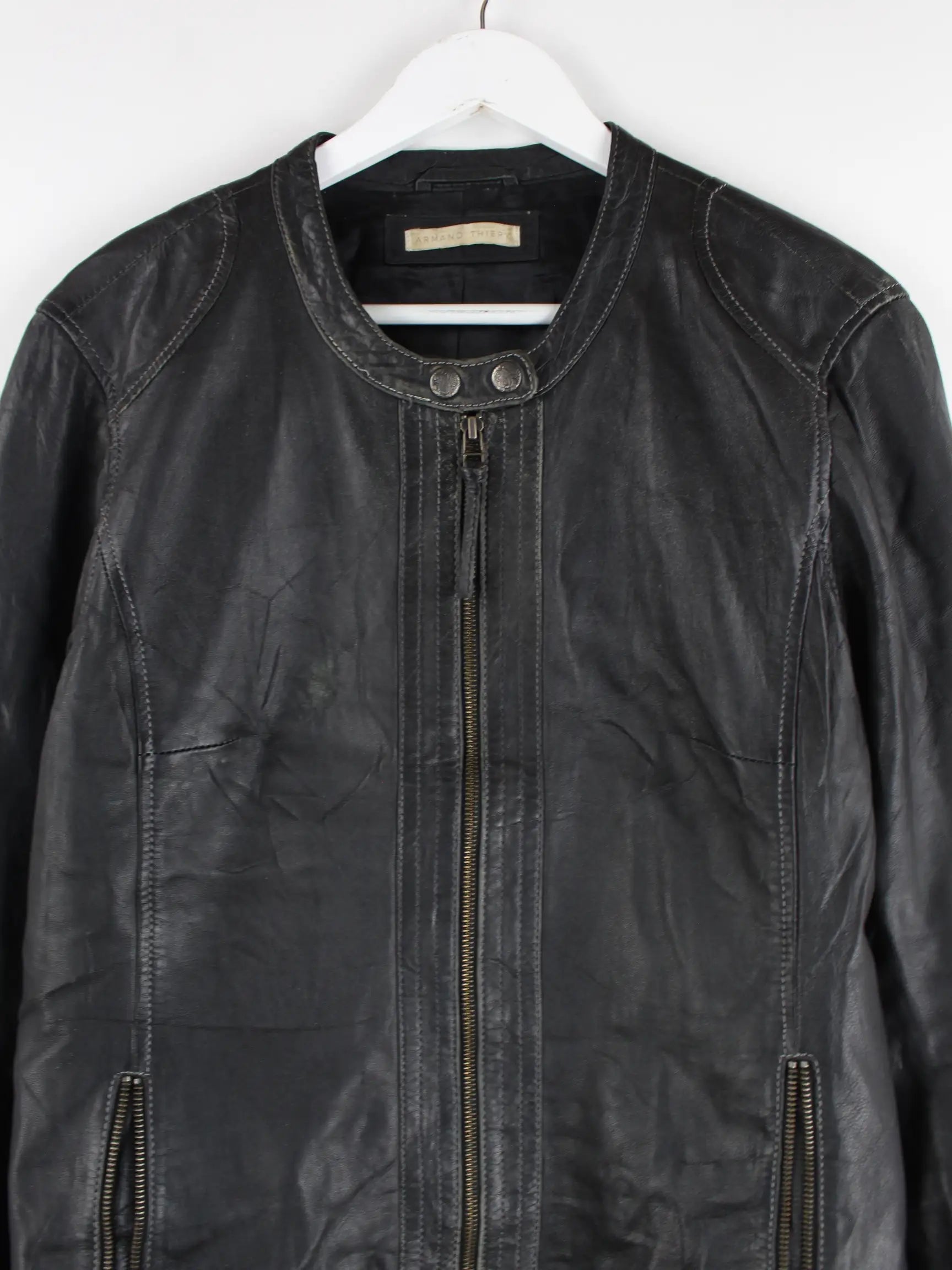 Vintage Leder Biker Jacke Schwarz M