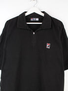 Poloshirt vom Brand Fila in Größe XL aus den 90'ern. Es ist aus Baumwolle gefertigt und in Schwarz vorrätig.