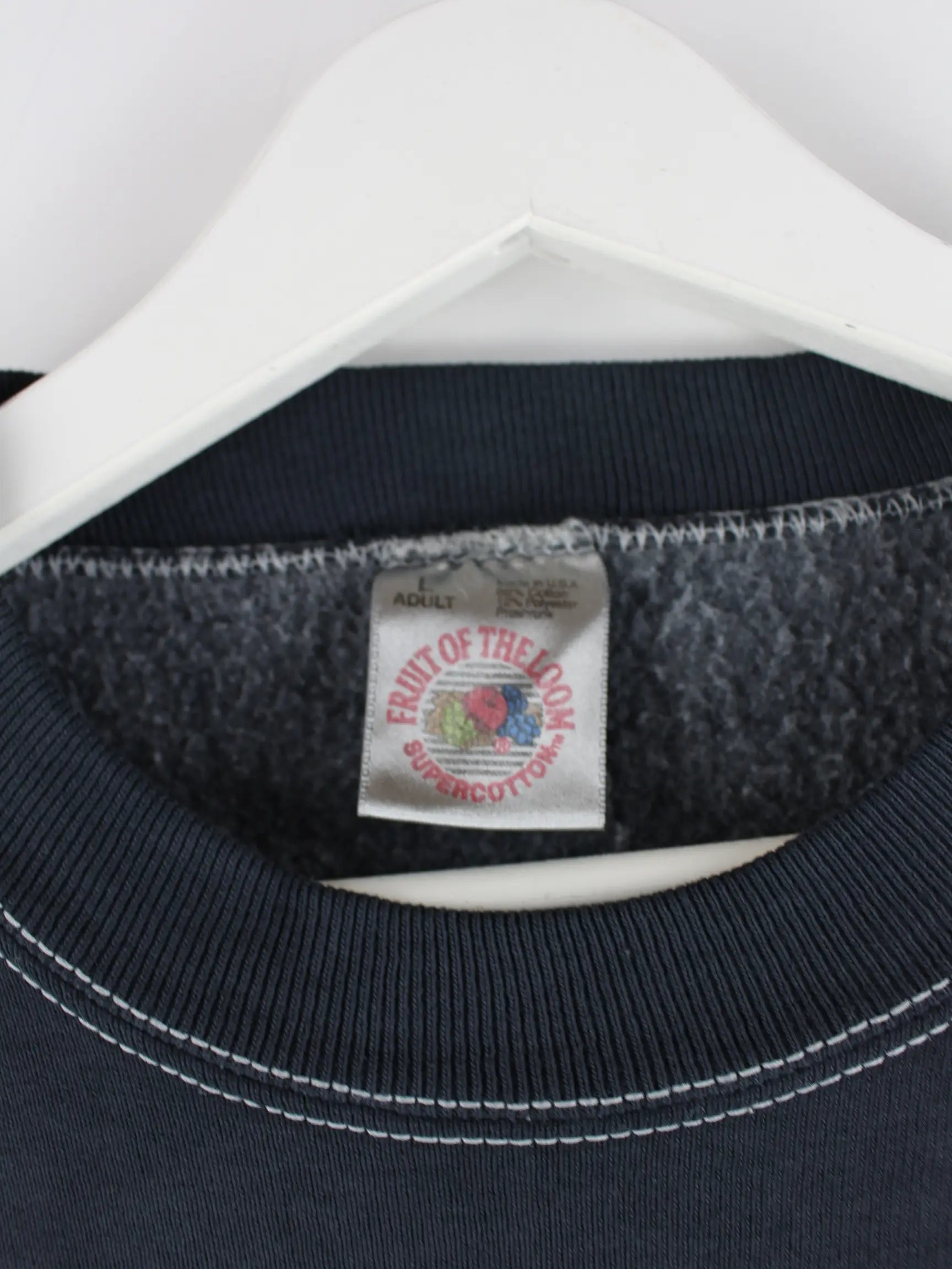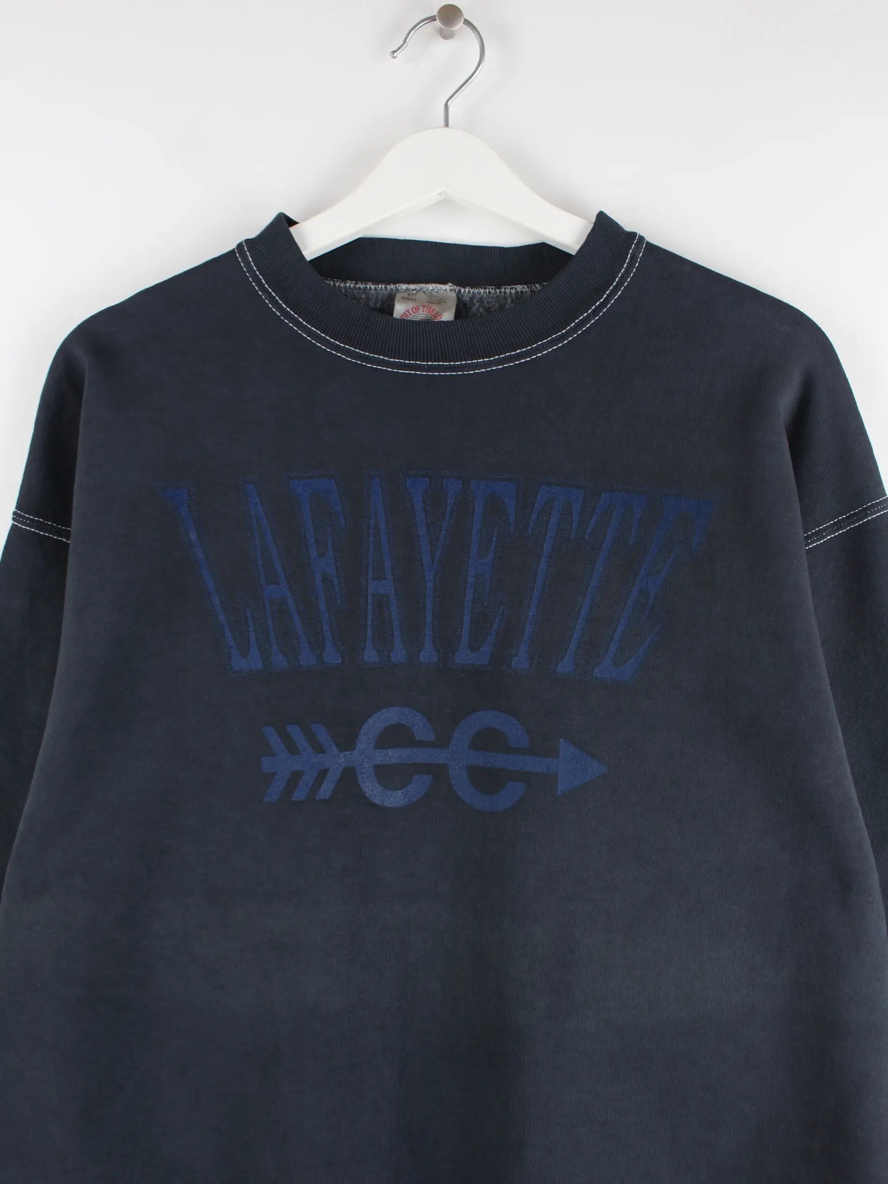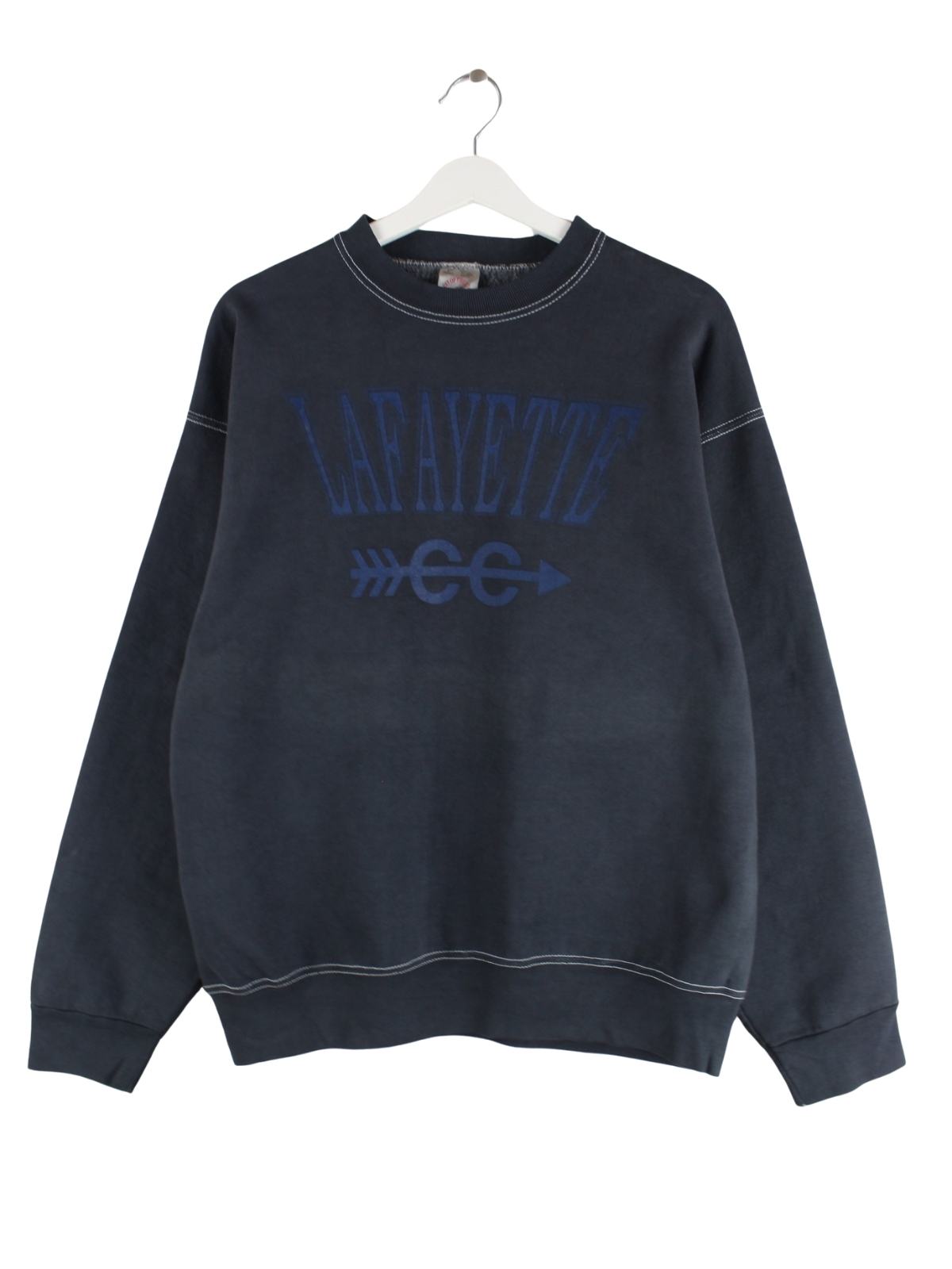 Grauer Sweater vom Brand Fruit of the Loom aus den 90'ern in Größe L. Er ist aus einer Baumwollmischung gemacht und in gutem Zustand im Angebot. Mit schönem Lafayette Print.