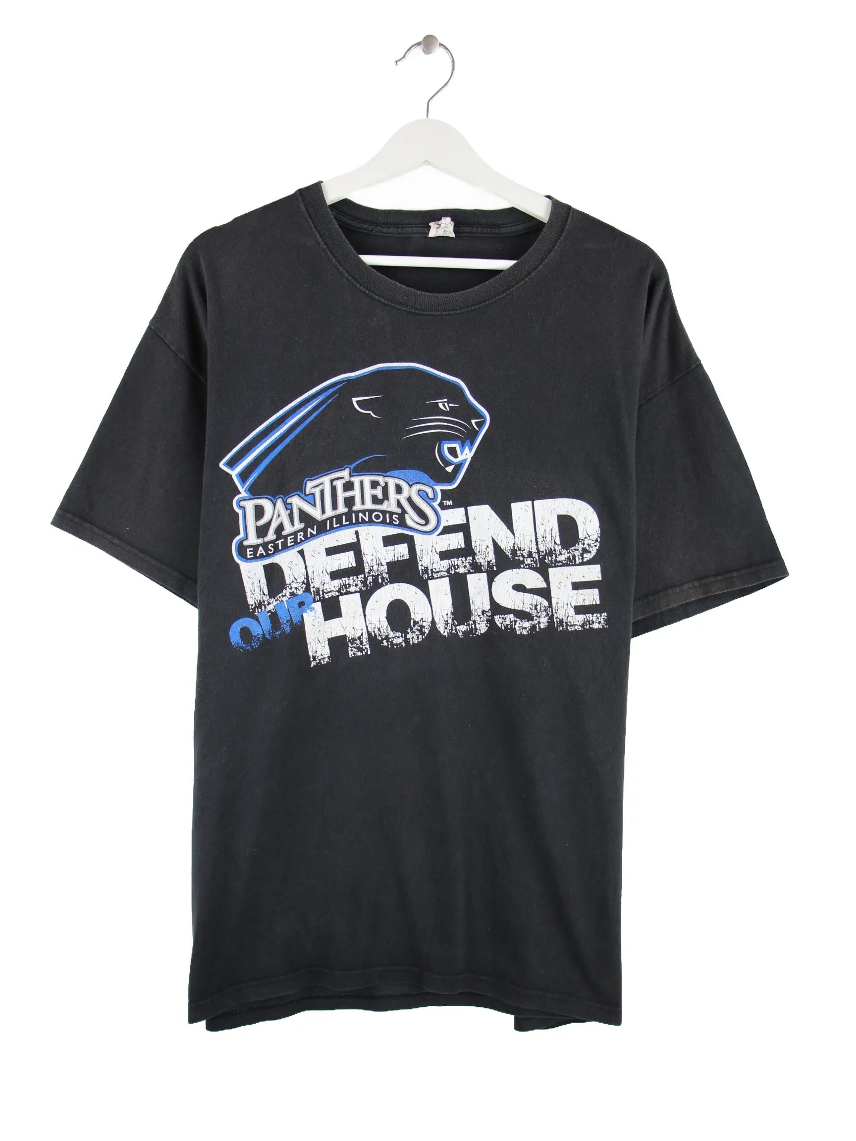 T-Shirt der Brand Delta in Größe XL. Es ist aus Baumwolle produziert und in Schwarz bei uns vorrätig. Mit chiquem Panthers Print.