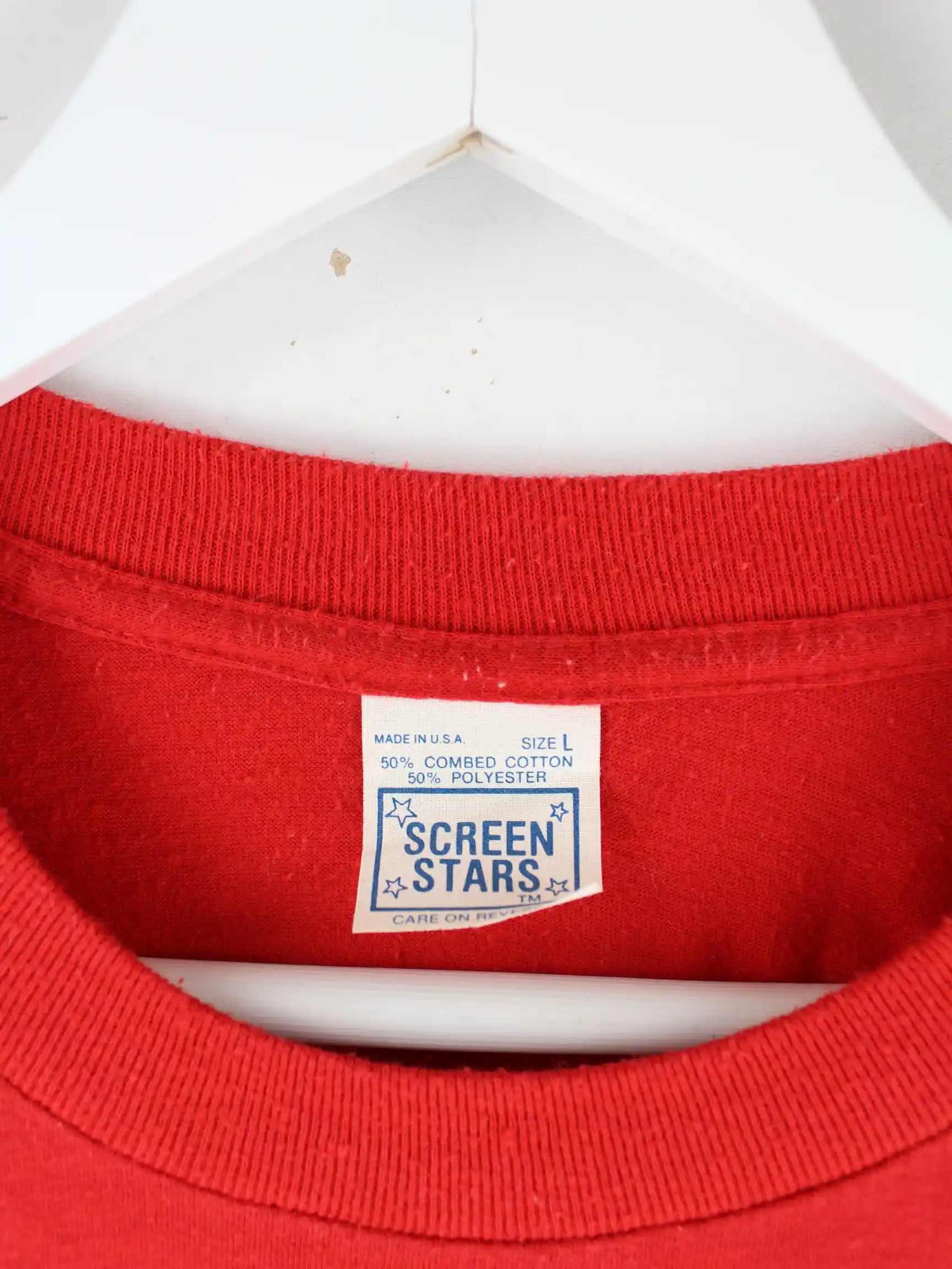 T-Shirt aus dem Hause Screen Stars in Größe L aus den 90'ern. Es ist aus einer Baumwollmischung und in Rot zu bekommen. Mit schickem Ohio Print.