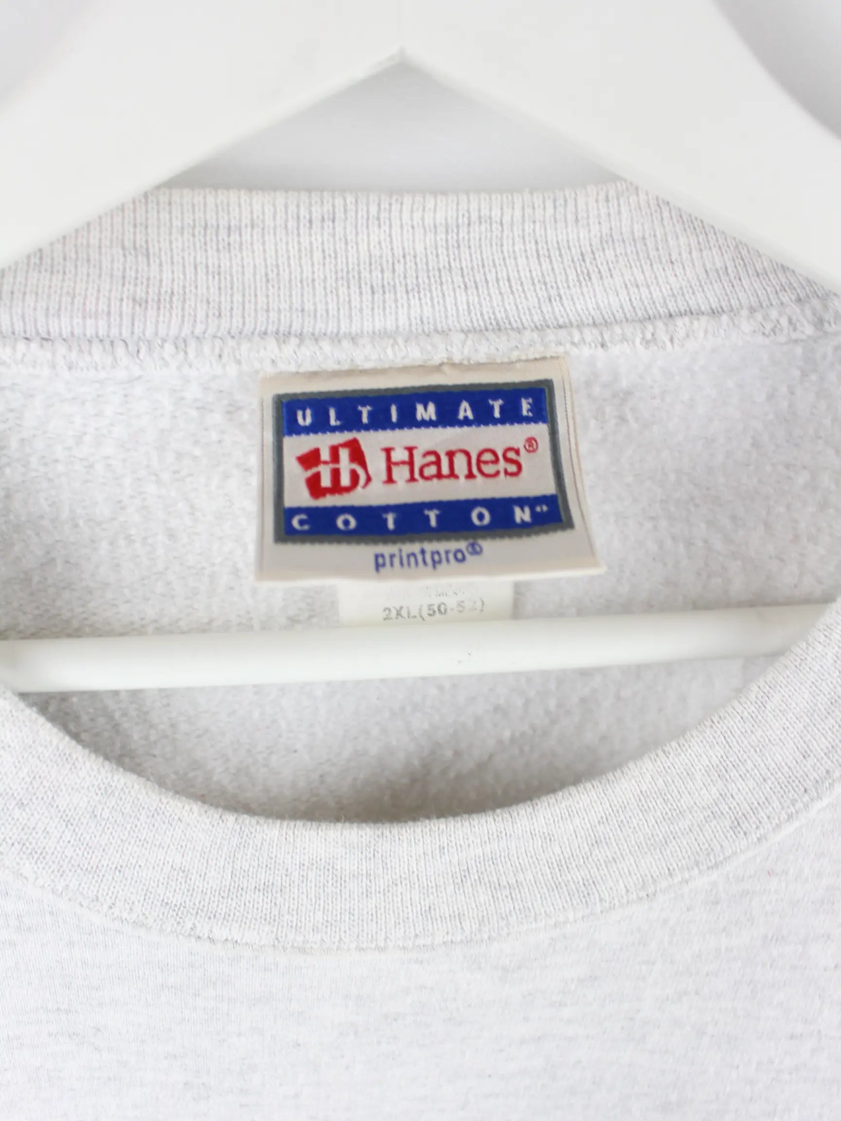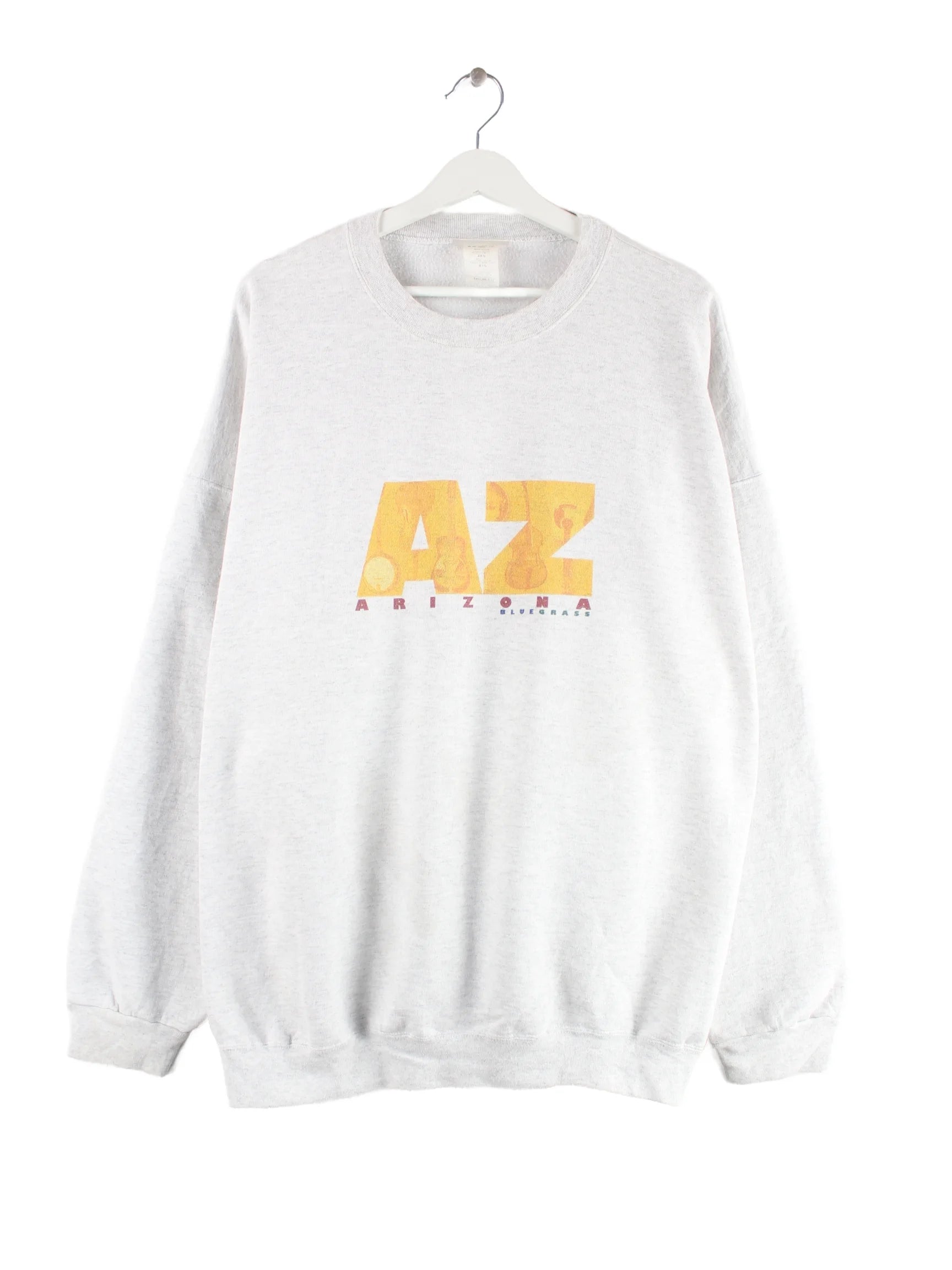Sweater von Hanes in Größe XXL aus den 90'ern. Er ist aus einer Baumwollmischung und in Grau bei uns vorrätig. Mit schönem Arizona Print.