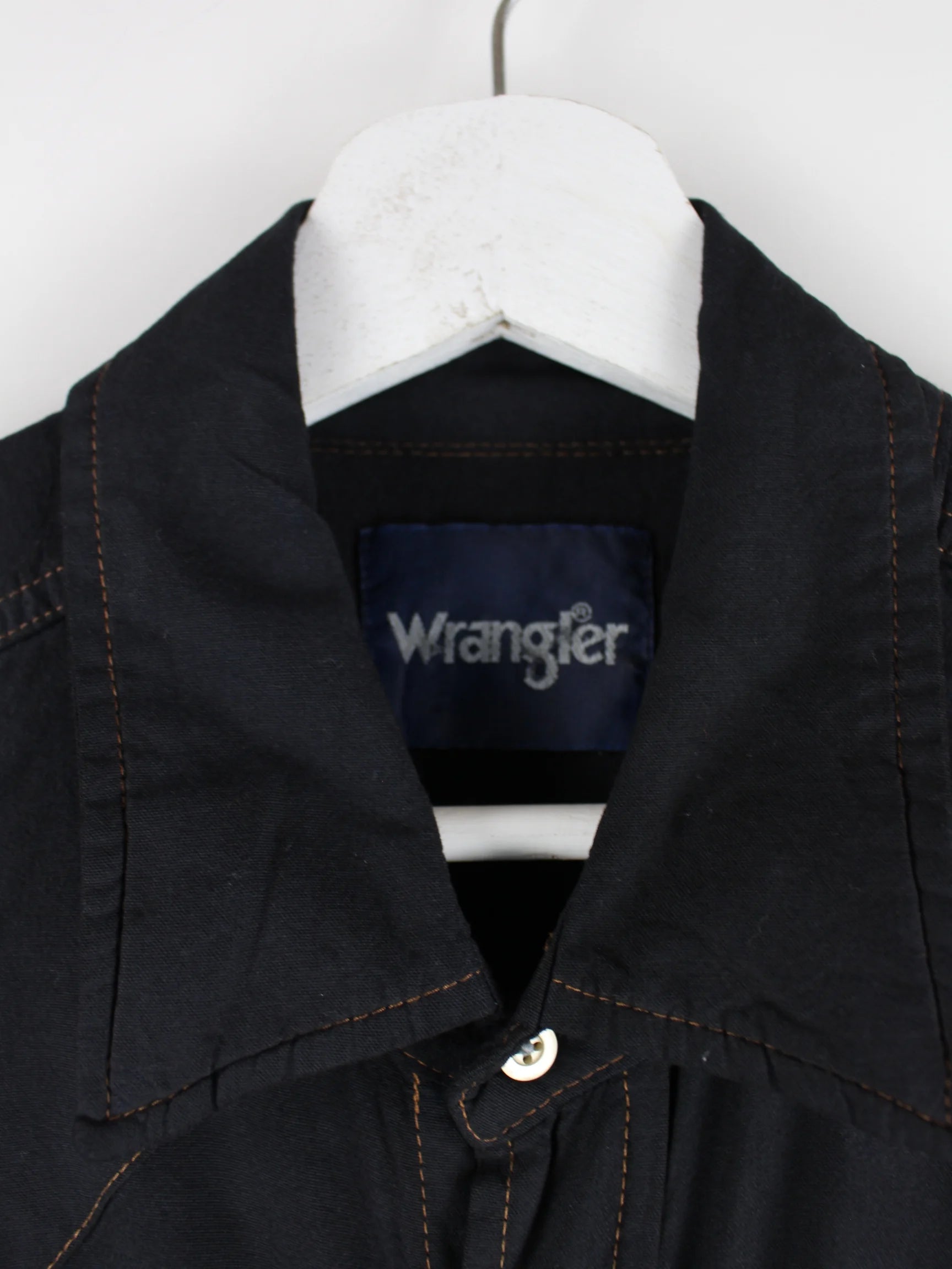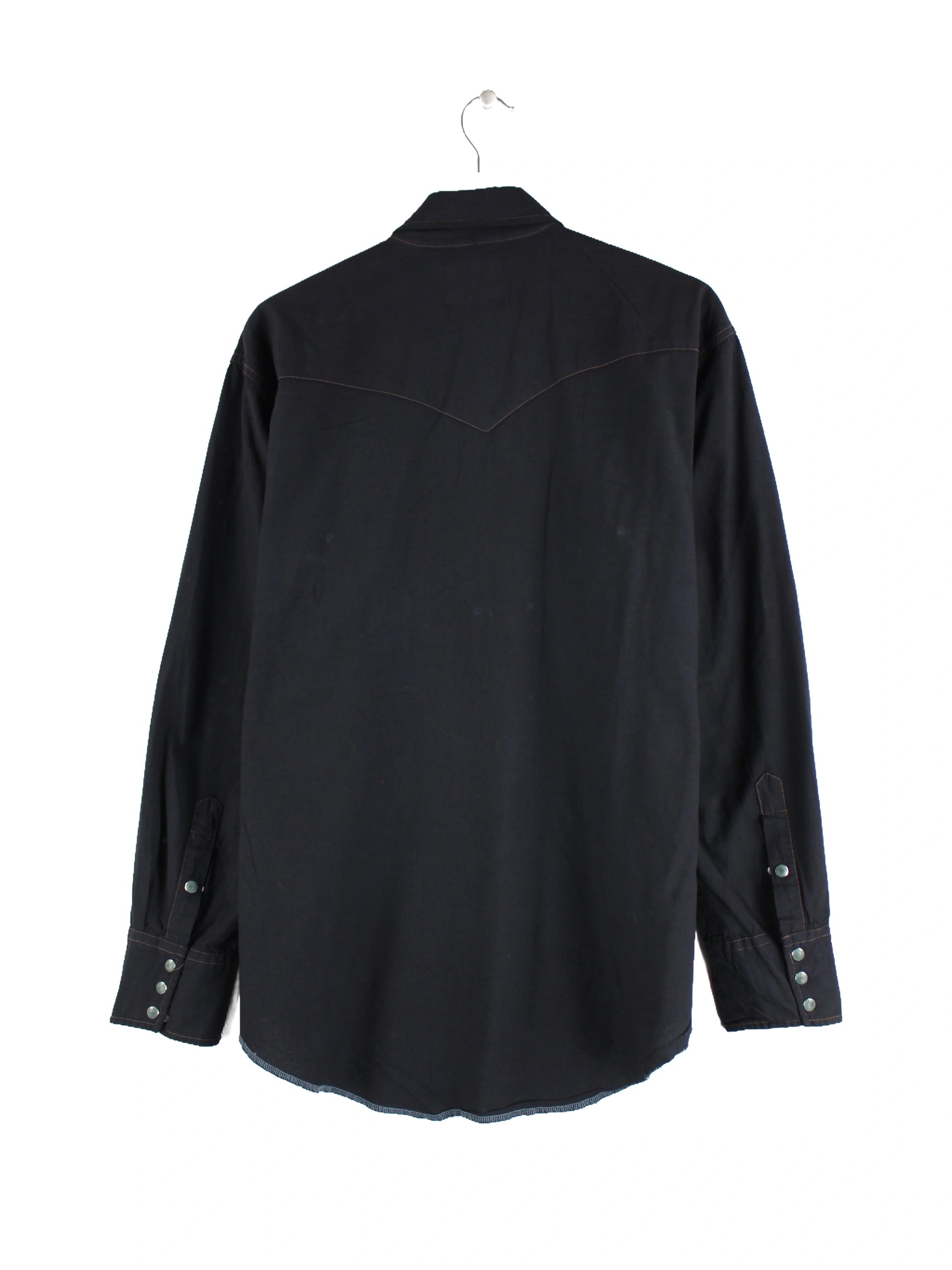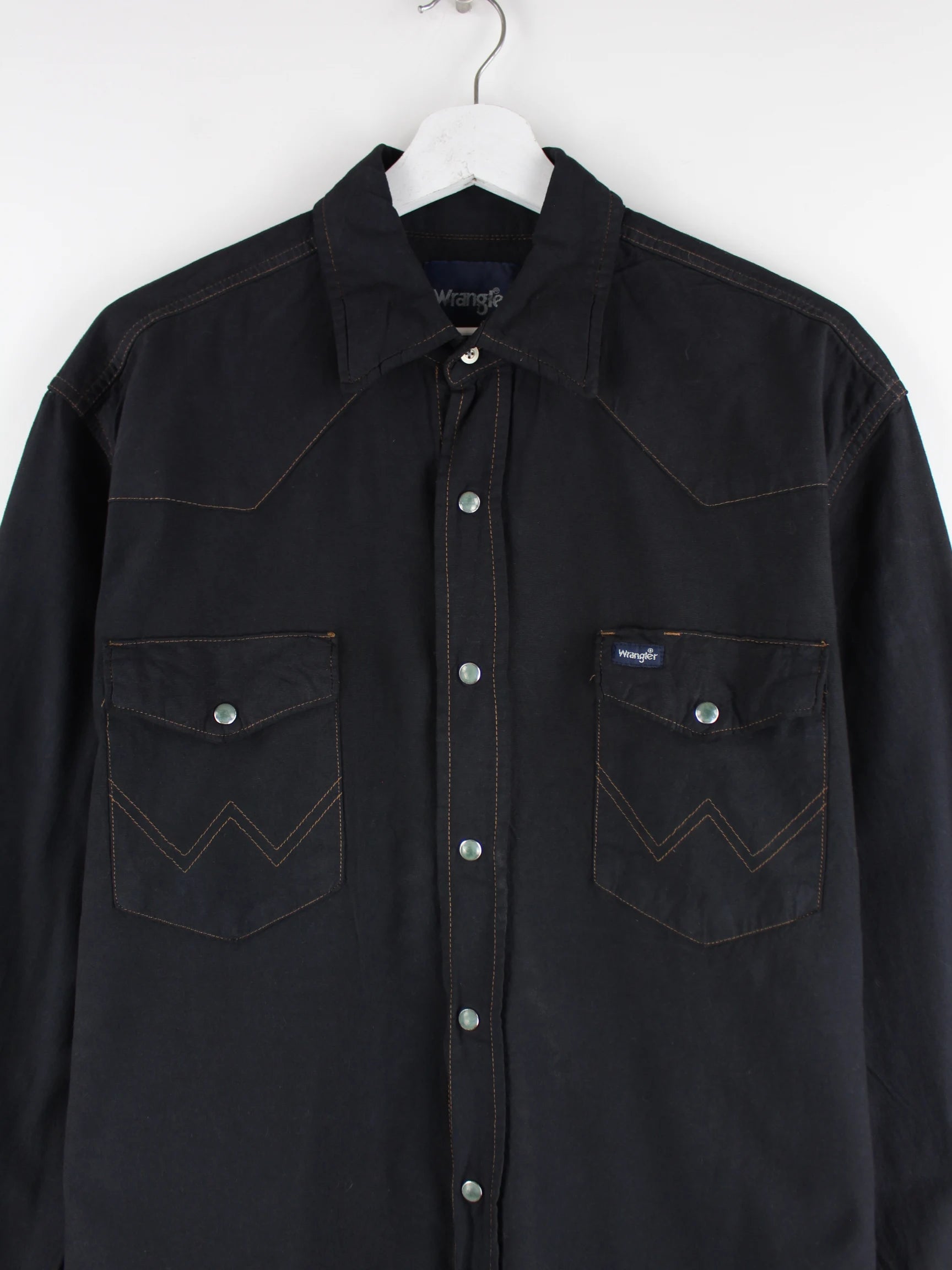 Schwarzes Freizeit Hemd der Brand Wrangler aus den 90'ern in Größe L. Es ist aus Baumwolle produziert und in sehr gutem Zustand bei uns vorrätig.