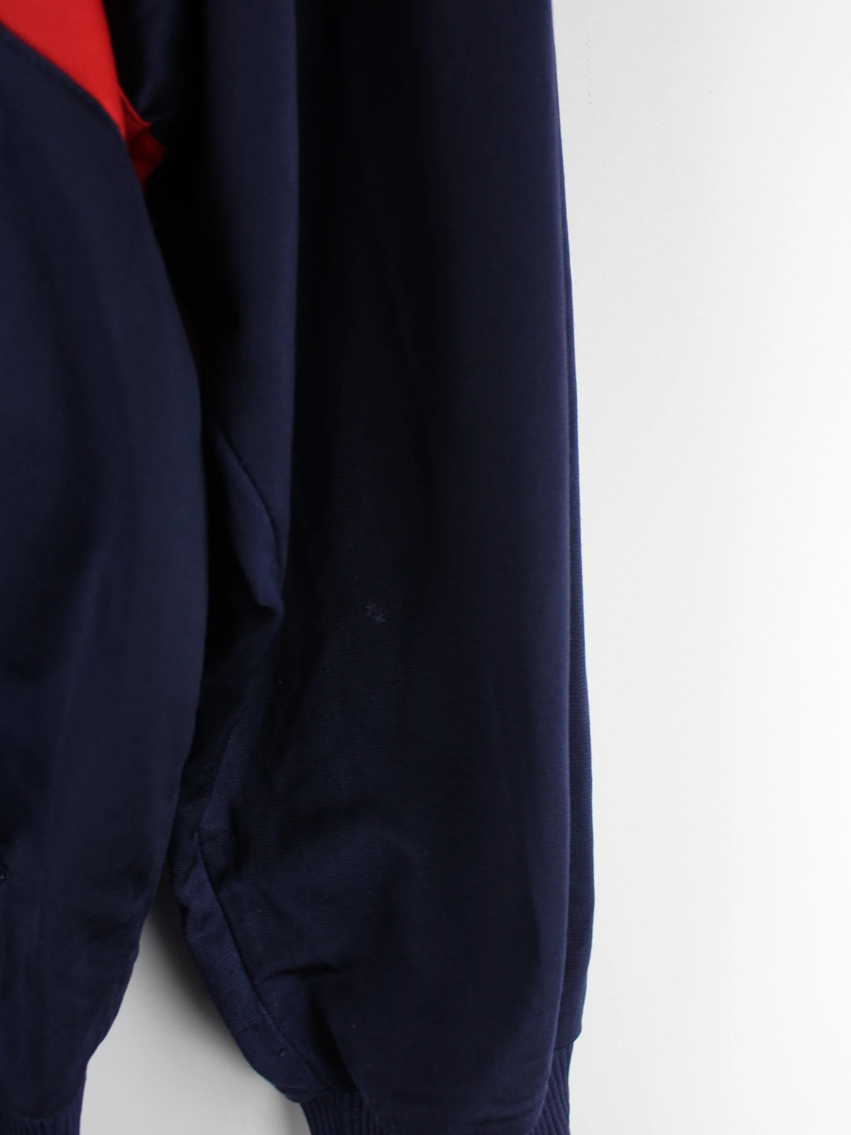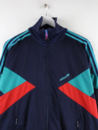 Blaue Trainingsjacke aus dem Hause Adidas aus den 90'ern in Größe M. Sie ist aus Synthetik produziert. Den Zustand würden wir als 'In Ordnung' bezeichnen (vergl. Bilder).