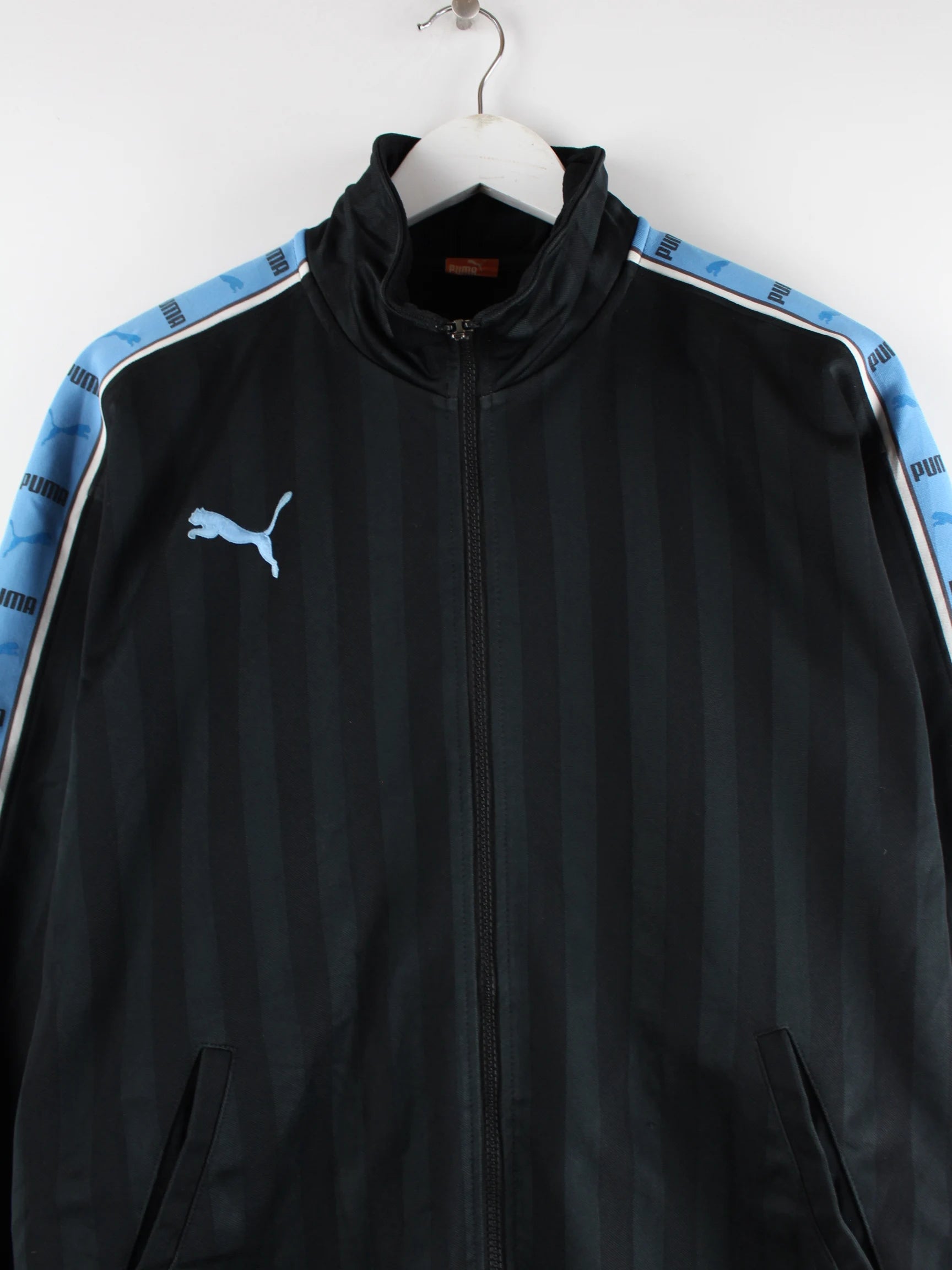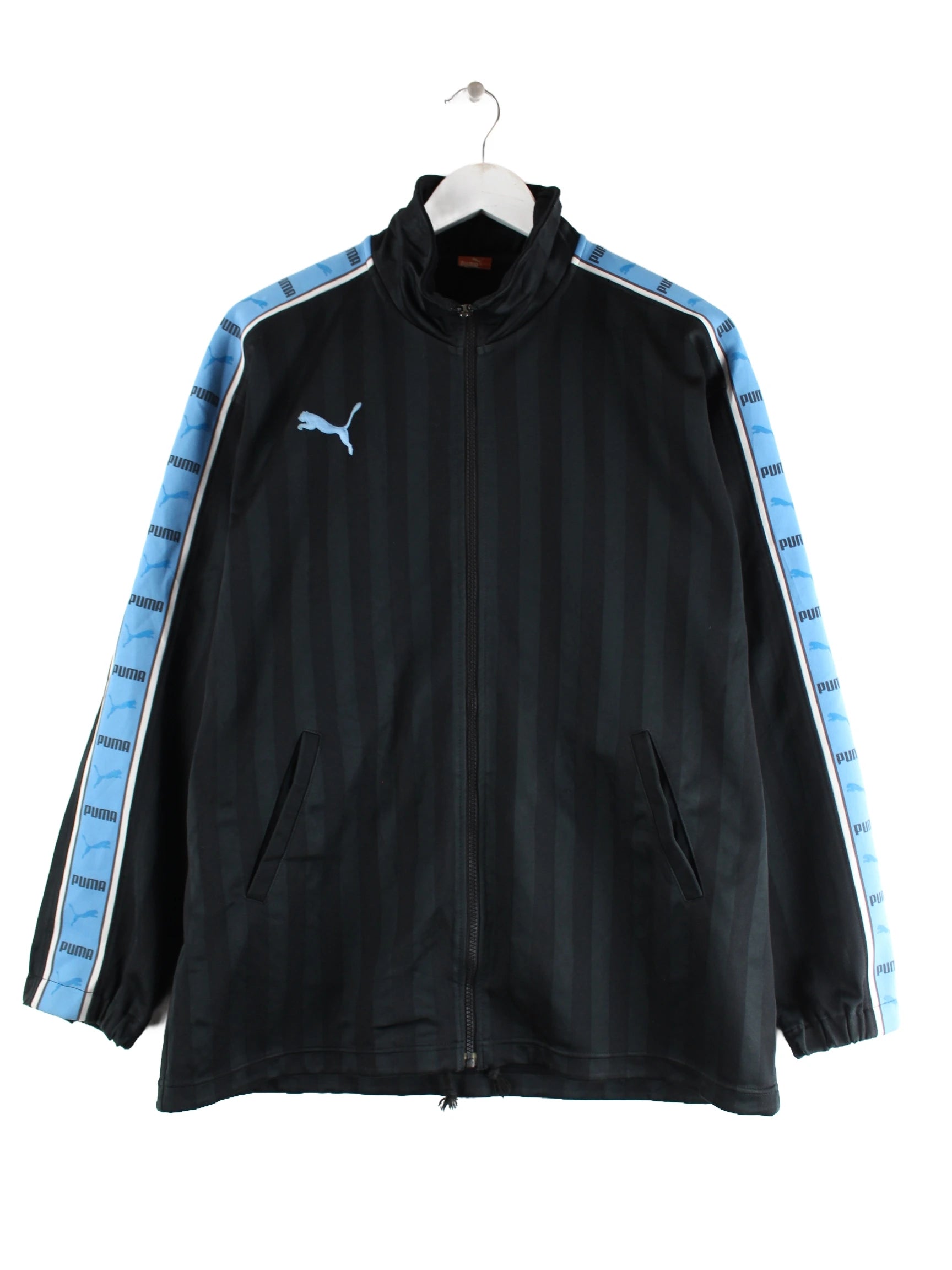Trainingsjacke vom Label Puma in Größe S. Sie ist aus Synthetik gefertigt und in Schwarz bei uns zu bekommen.