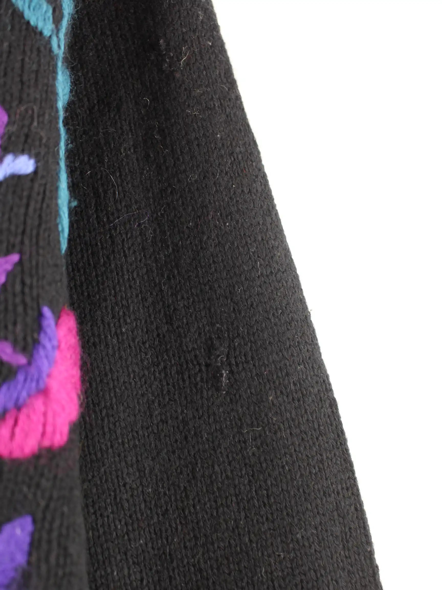 L.L. Bean Damen 00s Flower Woll Cardigan Strickjacke Schwarz S