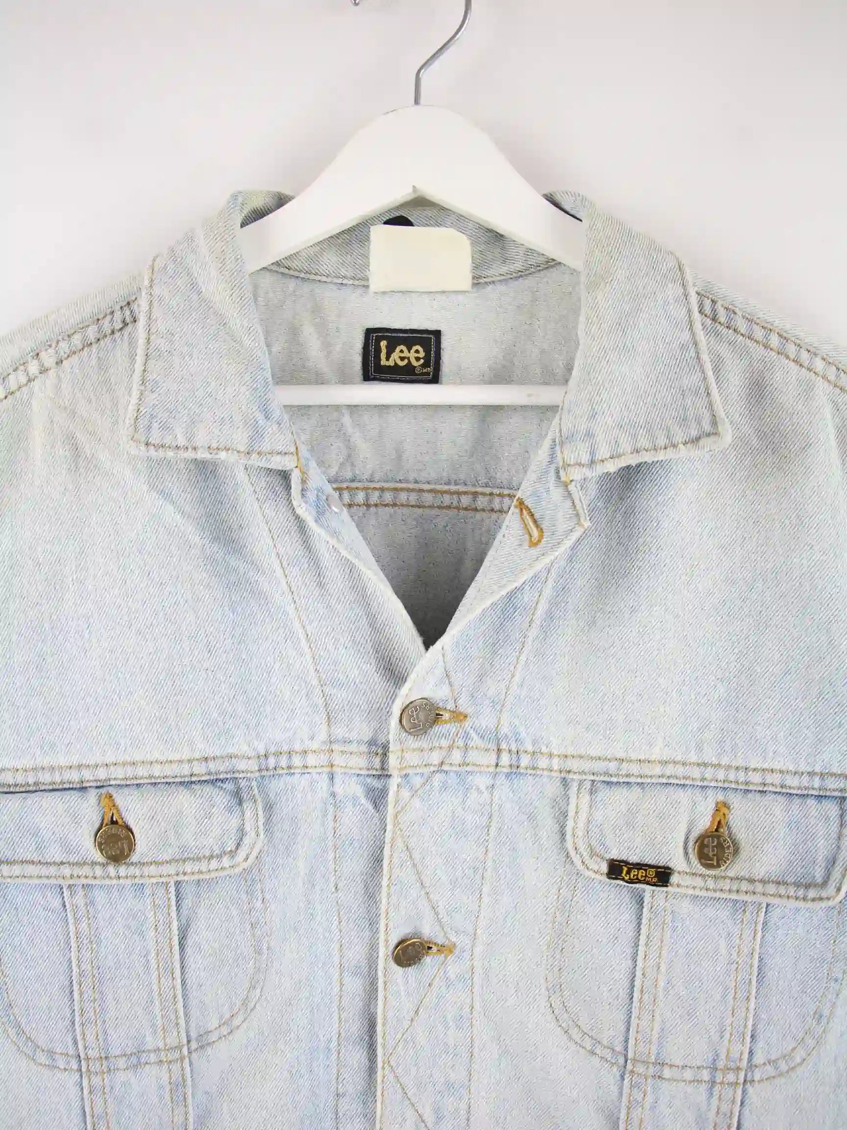 Leichte Jacke aus dem Hause Lee in Größe M aus den 80'ern. Sie ist aus Baumwolle gemacht und in Blau zu bekommen.