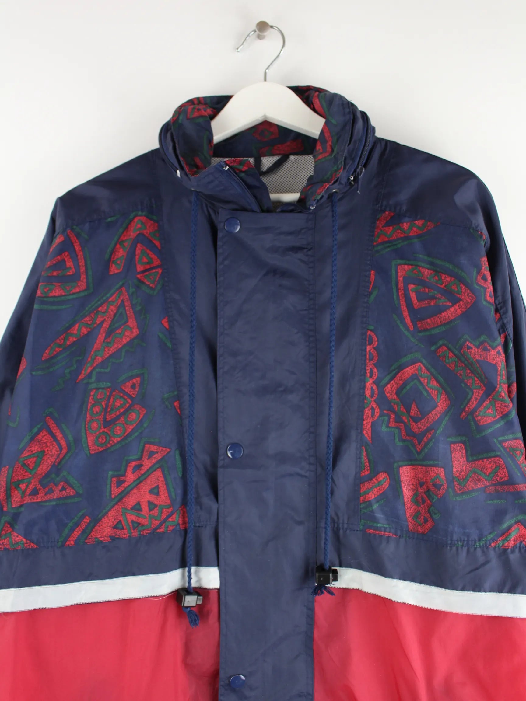 Blaue Vintage Leichte Jacke aus den 90'ern in Größe L. Sie ist aus Synthetik hergestellt und in sehr gutem Zustand bei uns vorrätig.