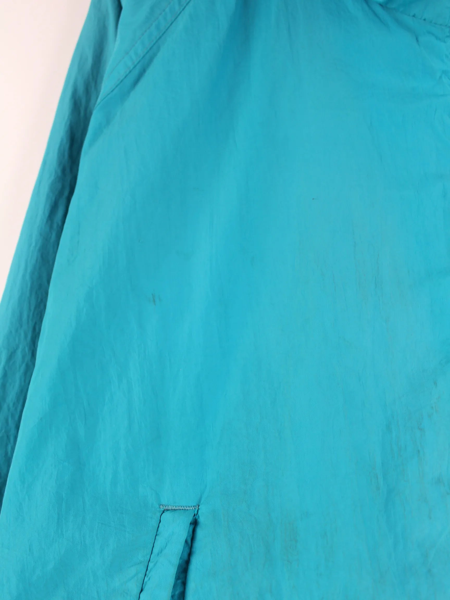 Vintage Leichte Jacke in Größe L aus den 90'ern. Sie ist aus Synthetik gefertigt und in Türkis vorrätig.