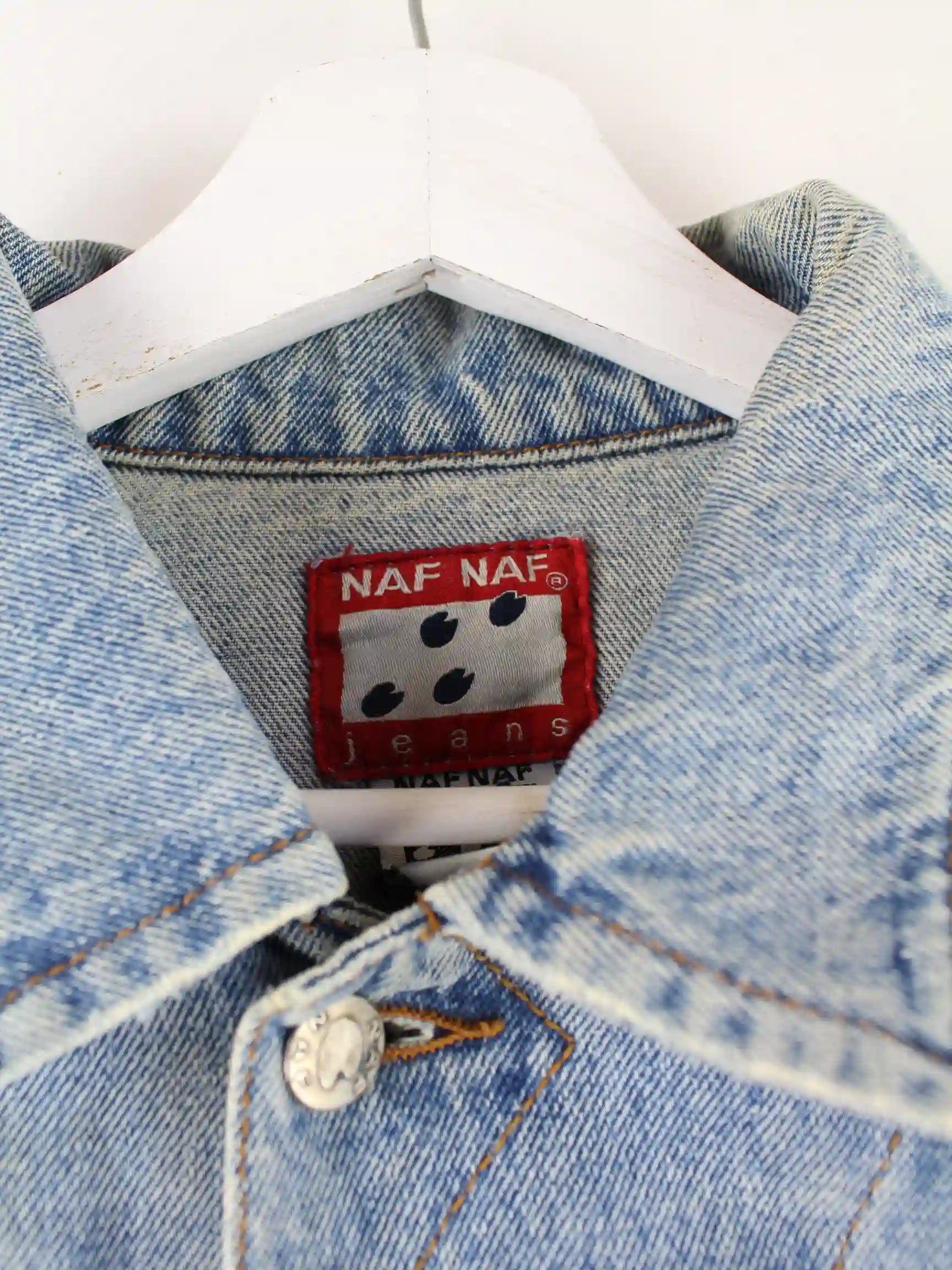 Naf Naf Damen 80s Vintage Jeans Jacke Blau L