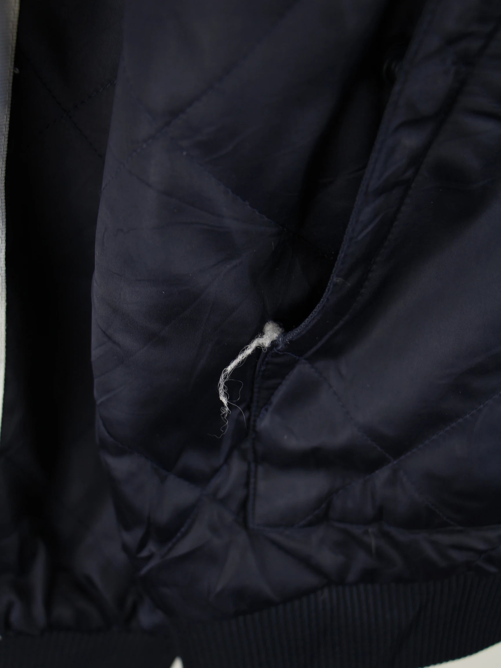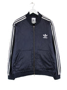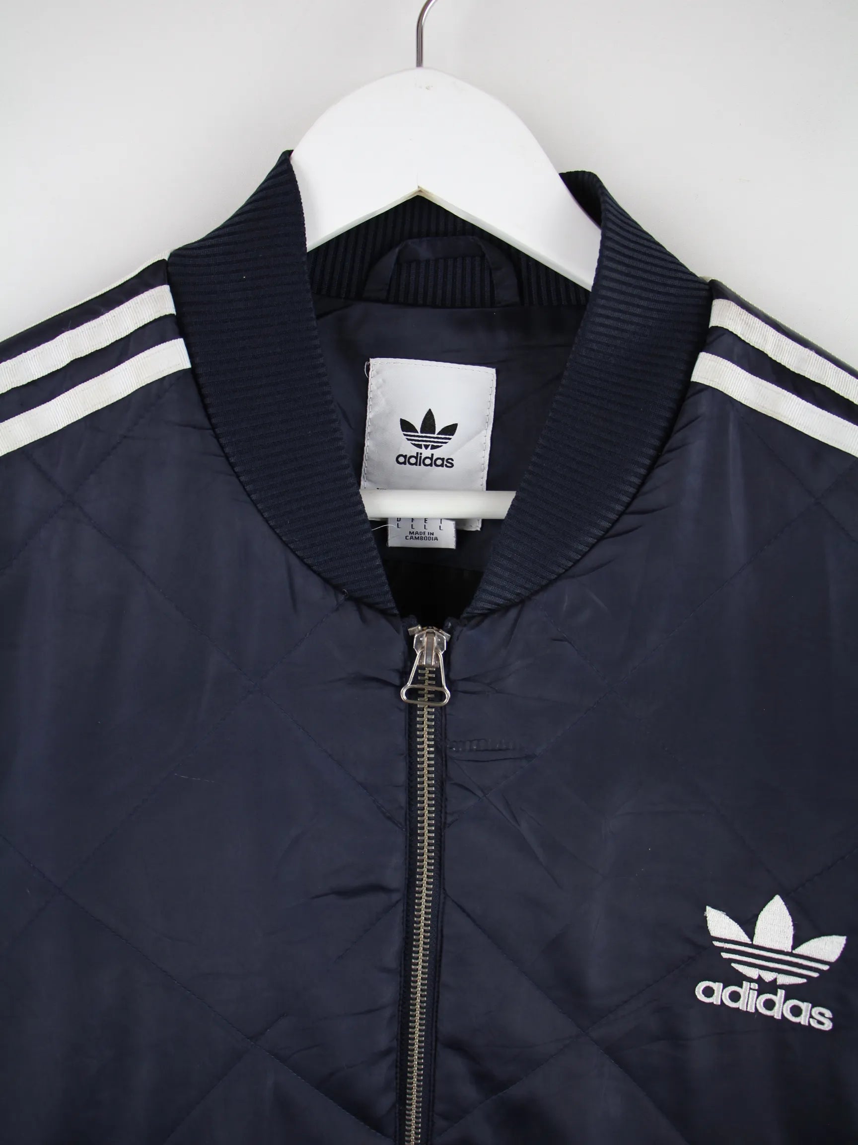 Jacke der Marke Adidas in Größe L. Sie ist aus Synthetik gefertigt und in Blau bei uns zu bekommen.