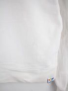 Weißer Hoodie der Brand Adidas in Größe L. Er ist aus einer Baumwollmischung angefertigt im Stock.