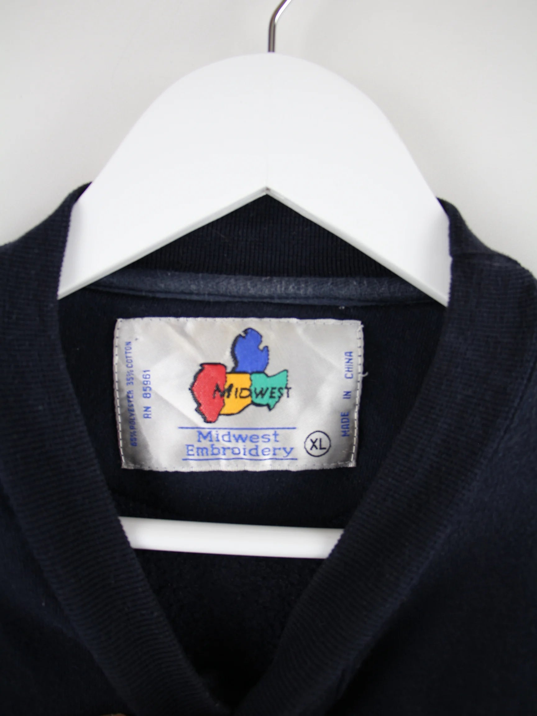 Sweater von Midwest in Größe XL aus den 90'ern. Er ist aus einer Baumwollmischung gefertigt und in Blau bei uns vorrätig.