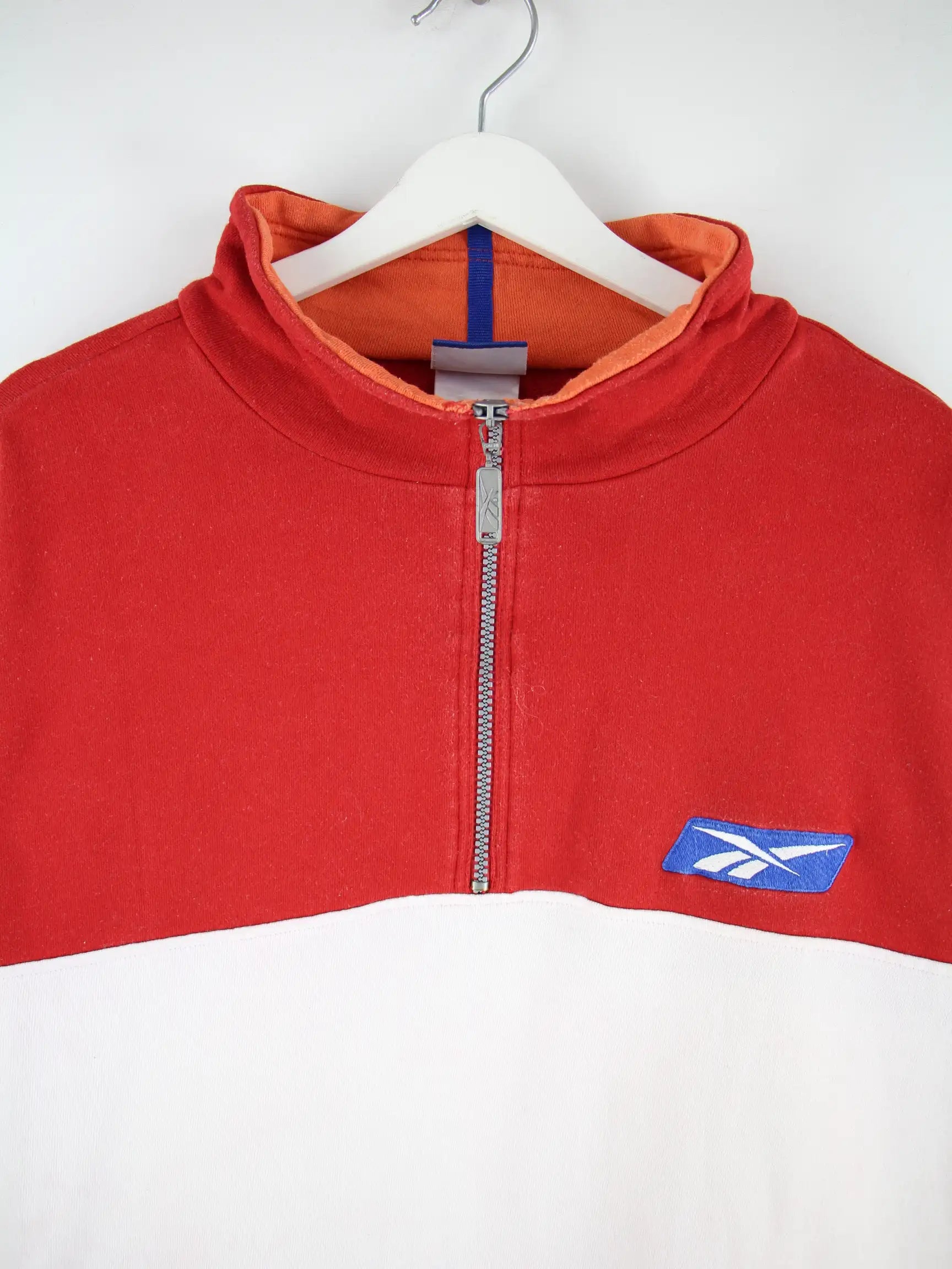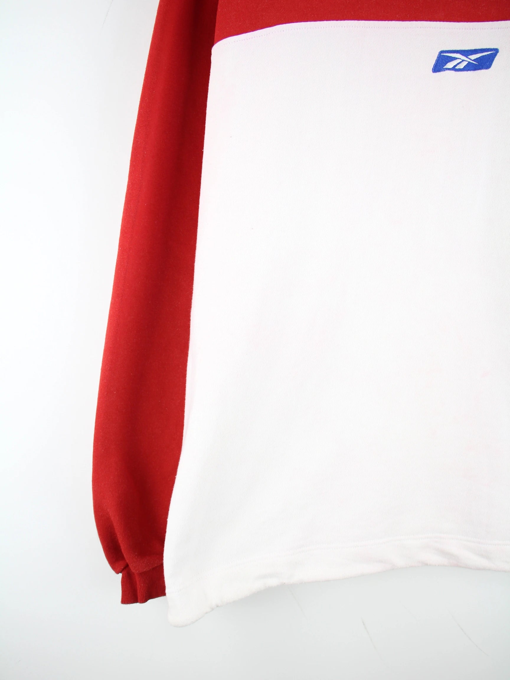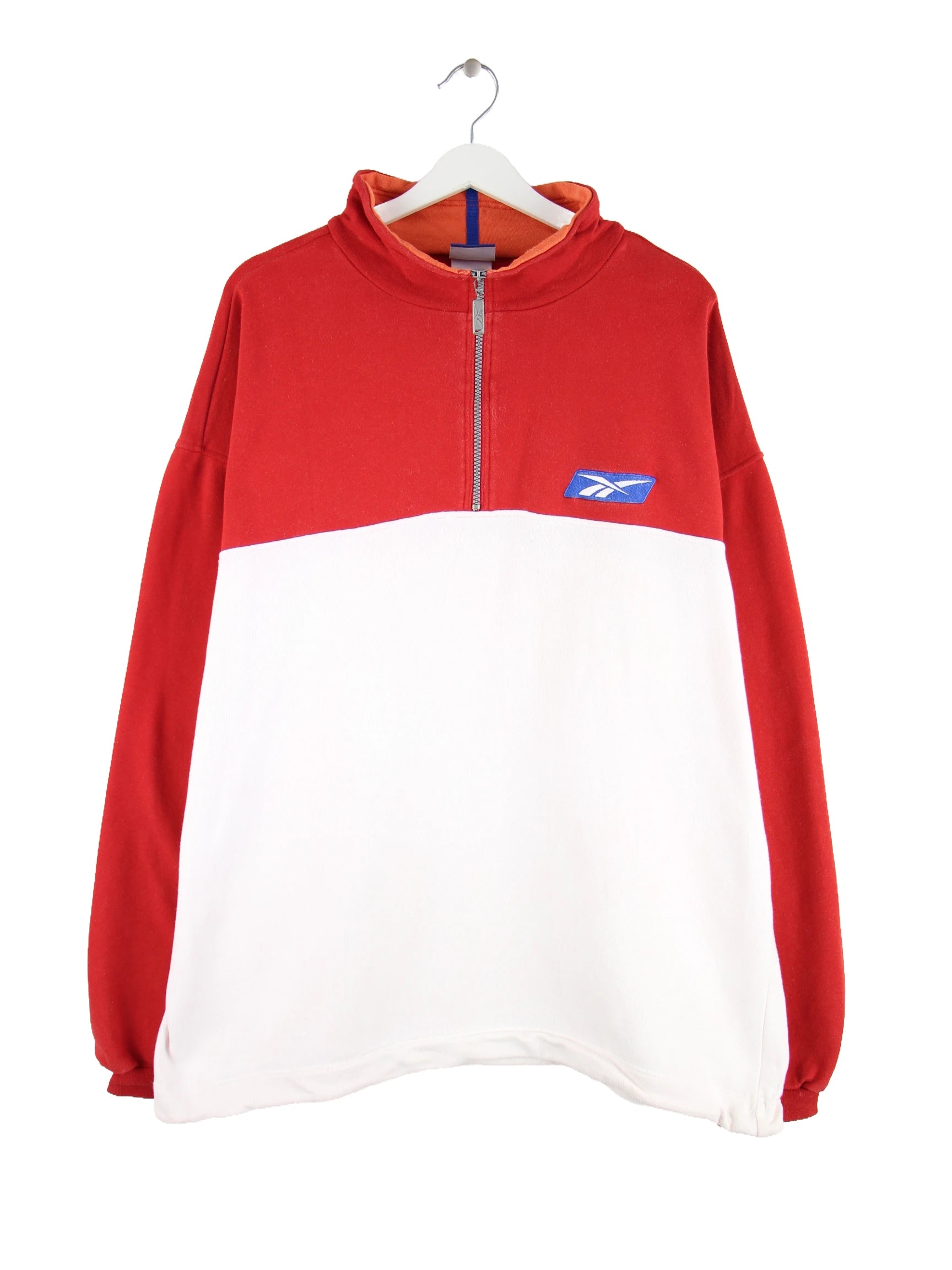 Sweater der Marke Reebok mit half Zip in Größe XL. Er ist aus einer Baumwollmischung angefertigt und in Rot bei uns zu bekommen.