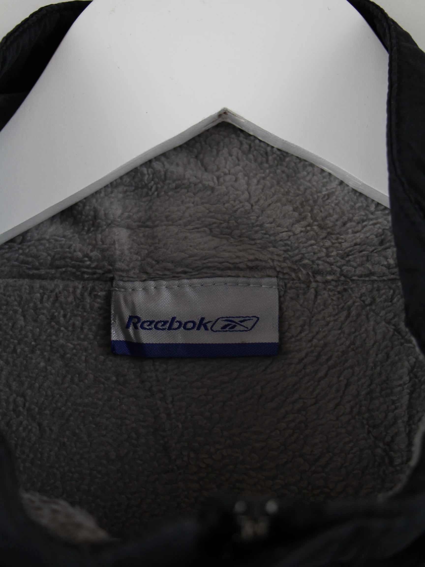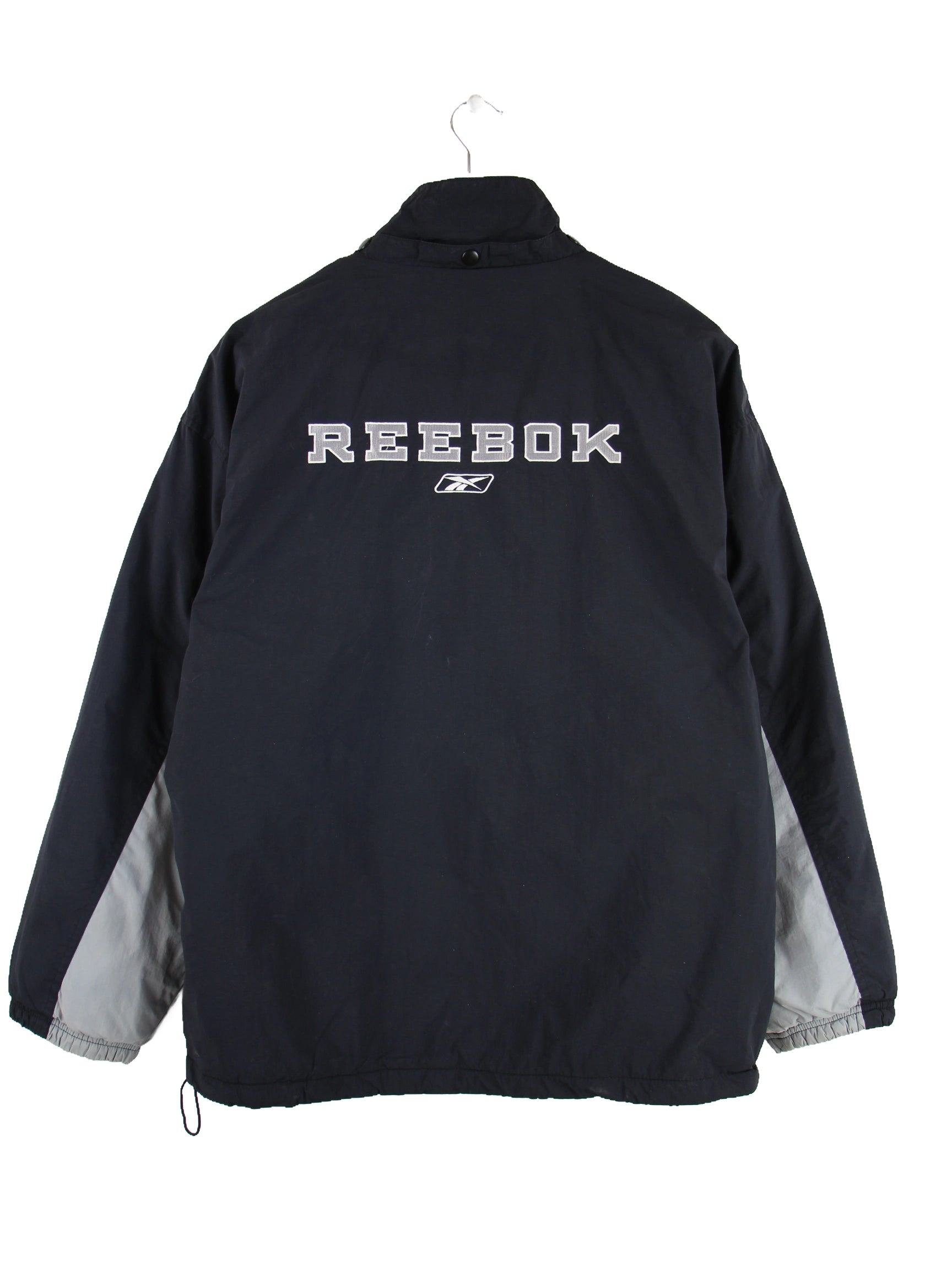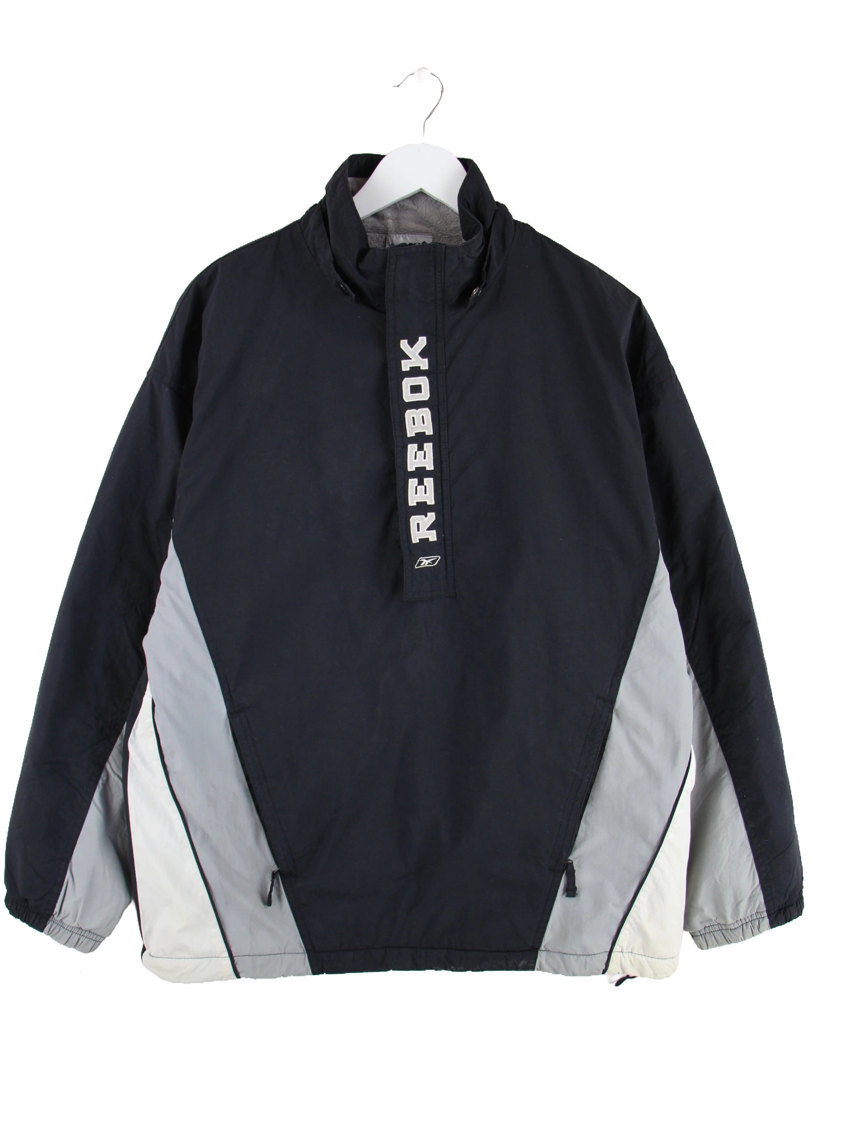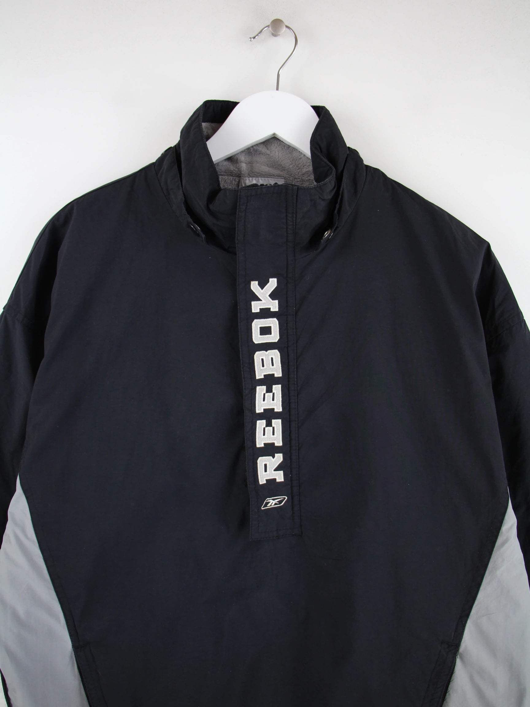 Schwarzer Windbreaker aus dem Hause Reebok in Größe M. Er ist aus Synthetik angefertigt und in gutem Zustand bei uns zu bekommen.