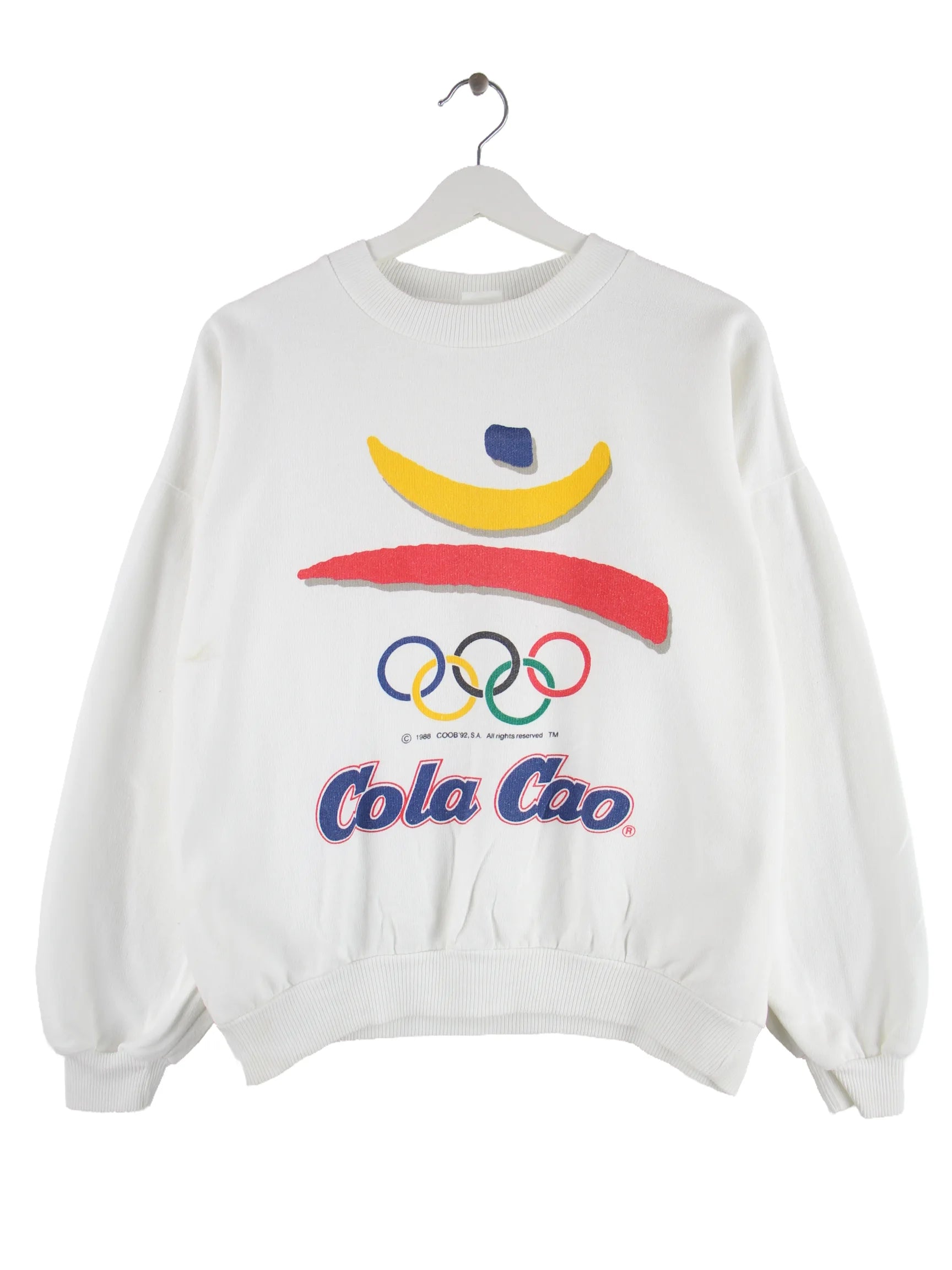 Vintage 1992 Cola Cao Olympia Barcelona Print Sweater Weiß XS