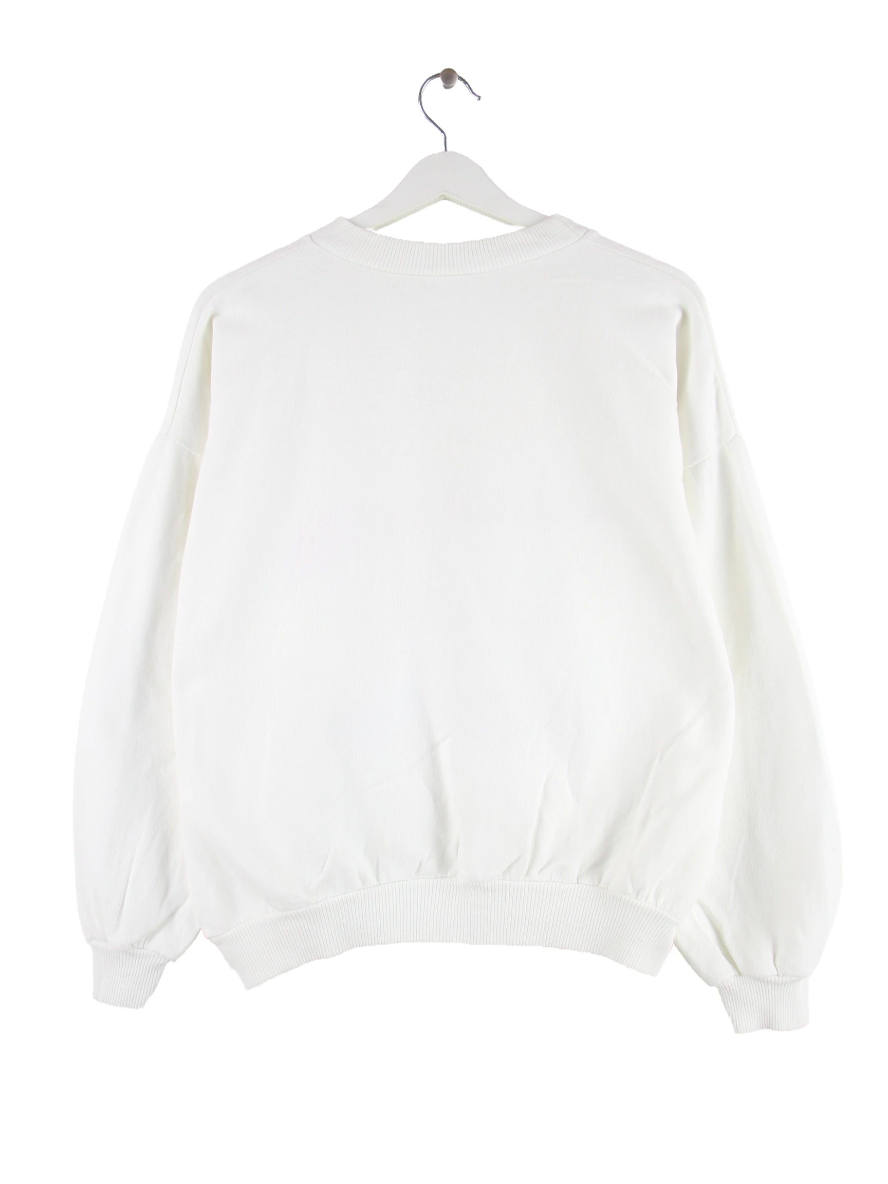 Weißer Vintage Sweater in Größe XS. Er ist aus einer Baumwollmischung und in gutem Zustand bei uns vorrätig. Mit seltenem Barcelona Print.