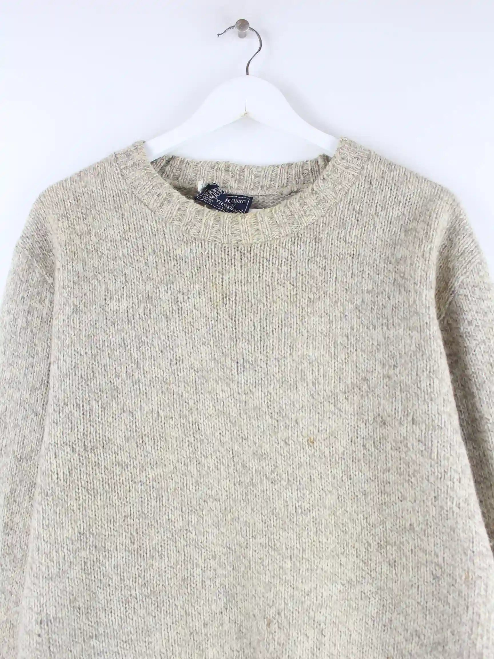 Vintage Pullover in Größe L aus den 90'ern. Er ist aus Wolle angefertigt und in Grau in Stock.