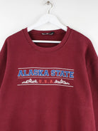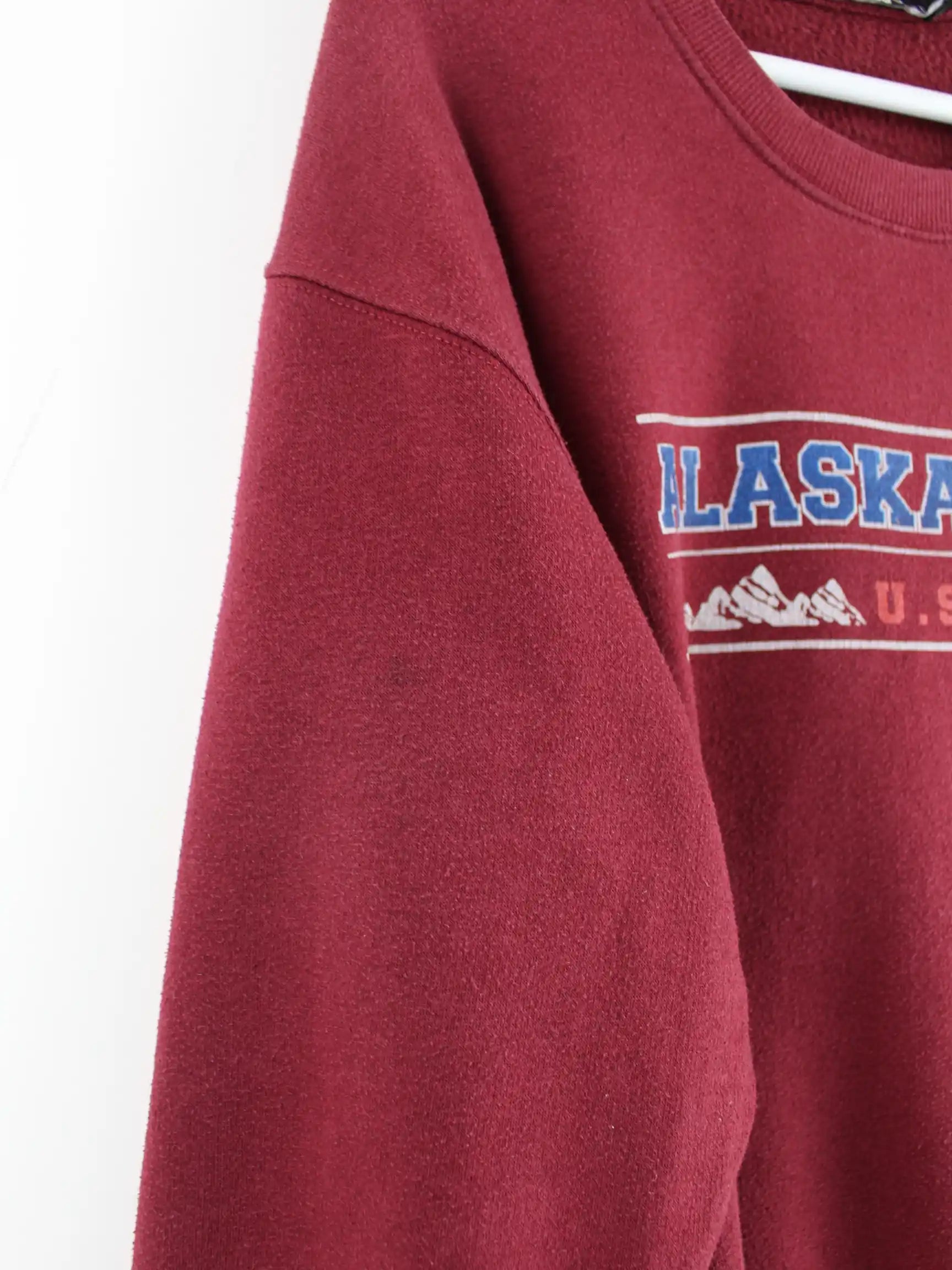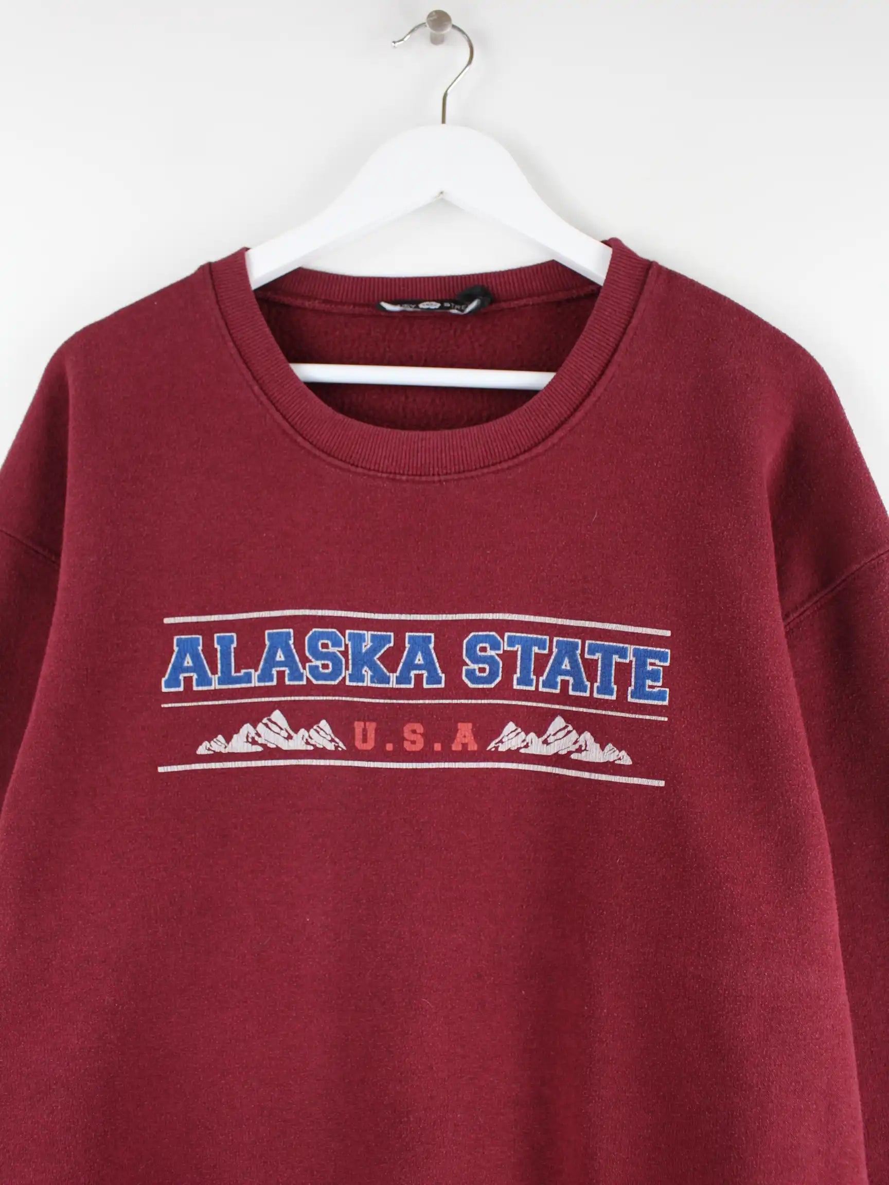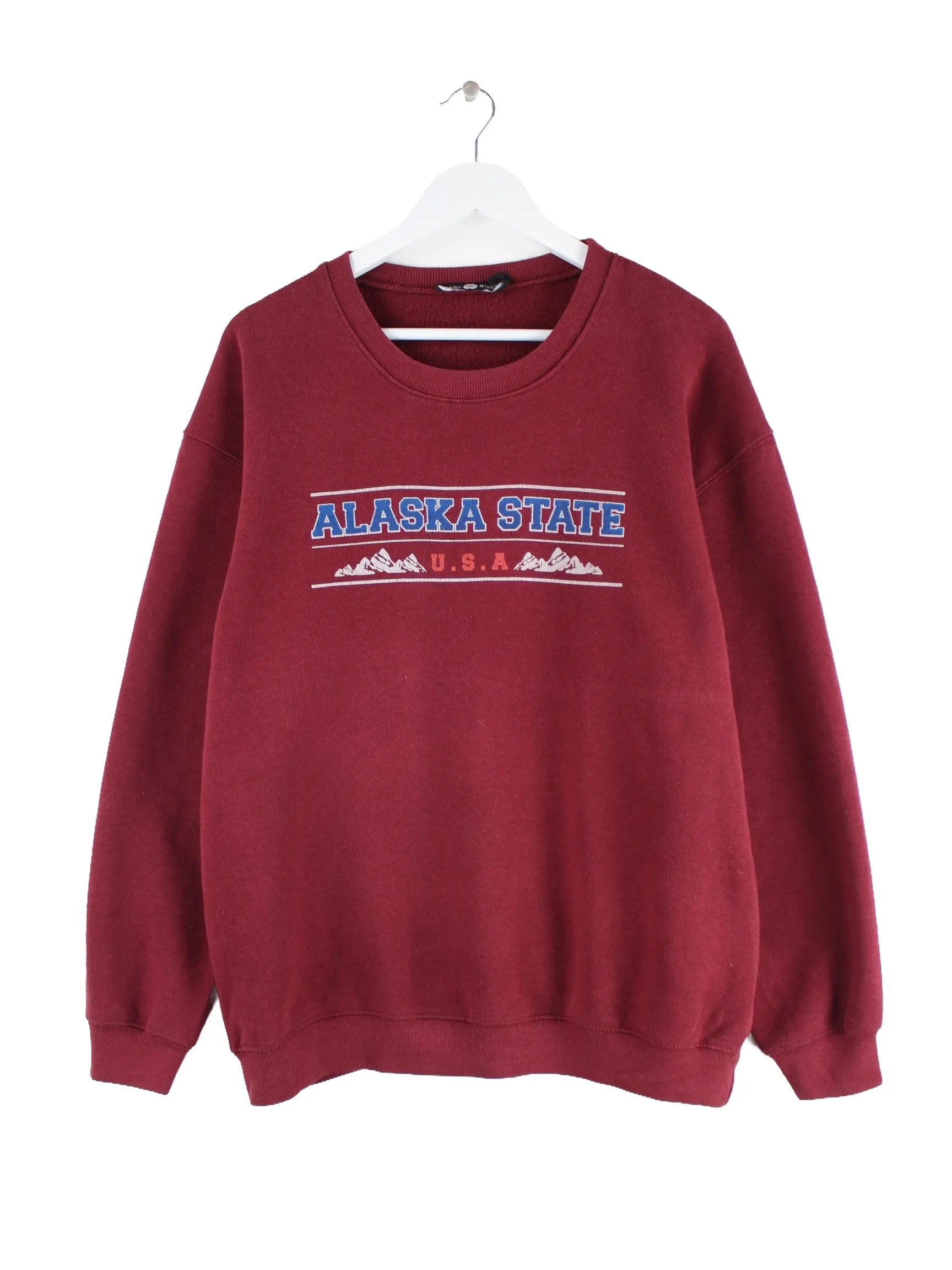 Roter Vintage Sweater in Größe M. Er ist aus einer Baumwollmischung und in gutem Zustand auf Lager. Mit tollem State Print.