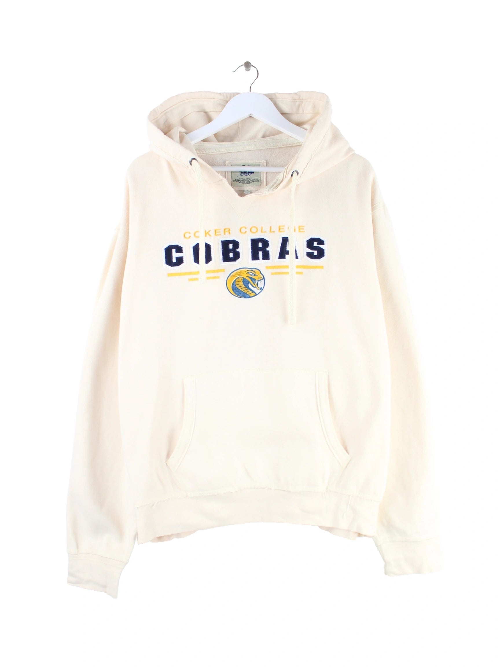 Beigefarbener Vintage Hoodie in Größe XXL. Er ist aus einer Baumwollmischung angefertigt und in gutem Zustand zu haben.