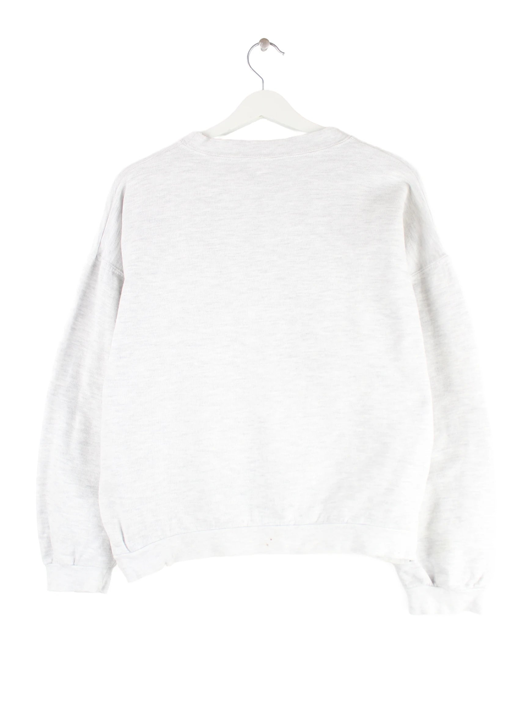 Vintage Sweater in Größe S aus den 90'ern. Er ist aus einer Baumwollmischung angefertigt und in Grau im Bestand.