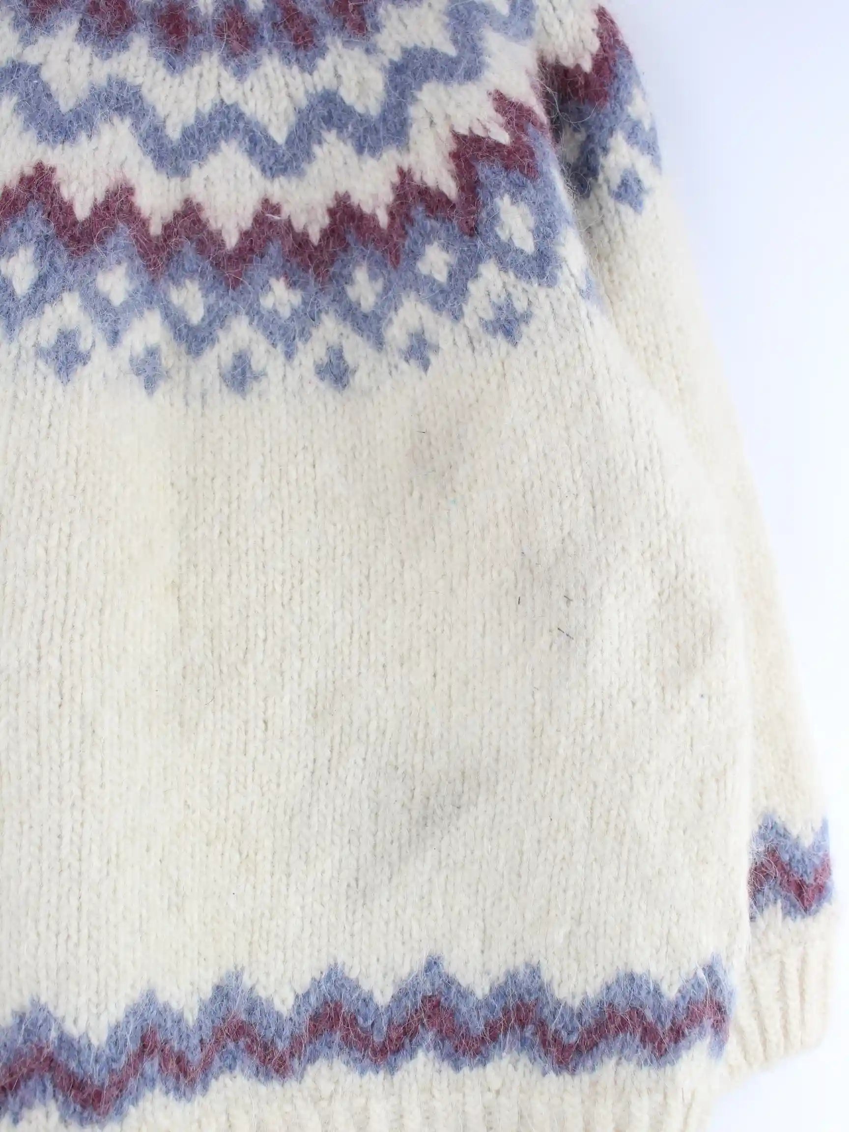 Beigefarbener Vintage Pullover aus den 90'ern in Größe M. Er ist aus Wolle angefertigt. Den Zustand würden wir als 'In Ordnung' bezeichnen (vergl. Bilder).