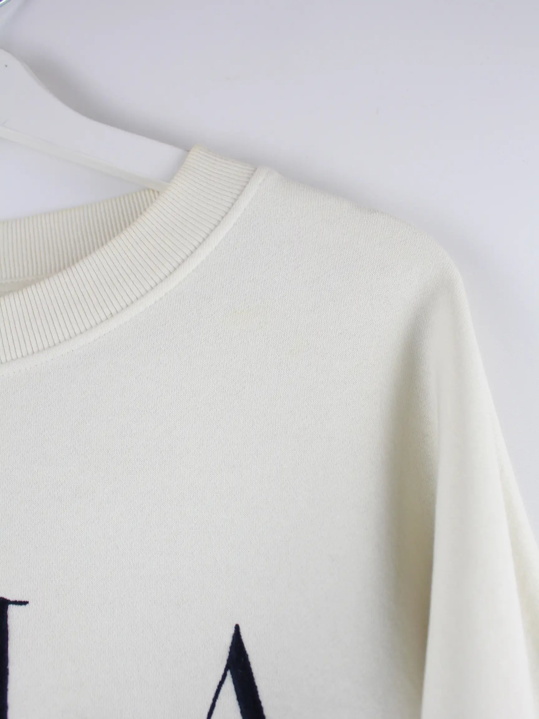Beigefarbener Vintage Sweater in Größe XL. Er ist aus einer Baumwollmischung gefertigt. Den Zustand würden wir als 'In Ordnung' bezeichnen (vergl. Bilder).