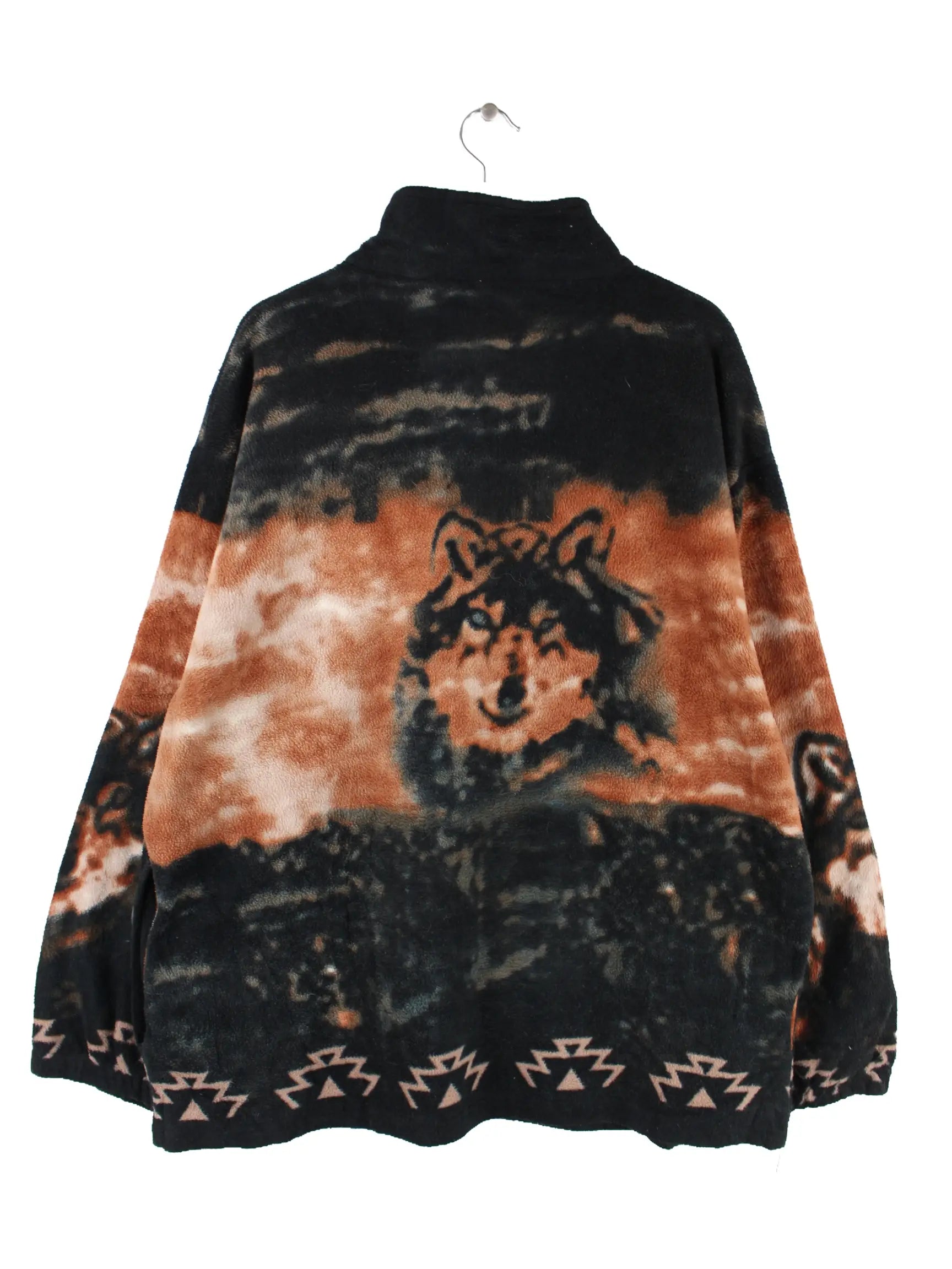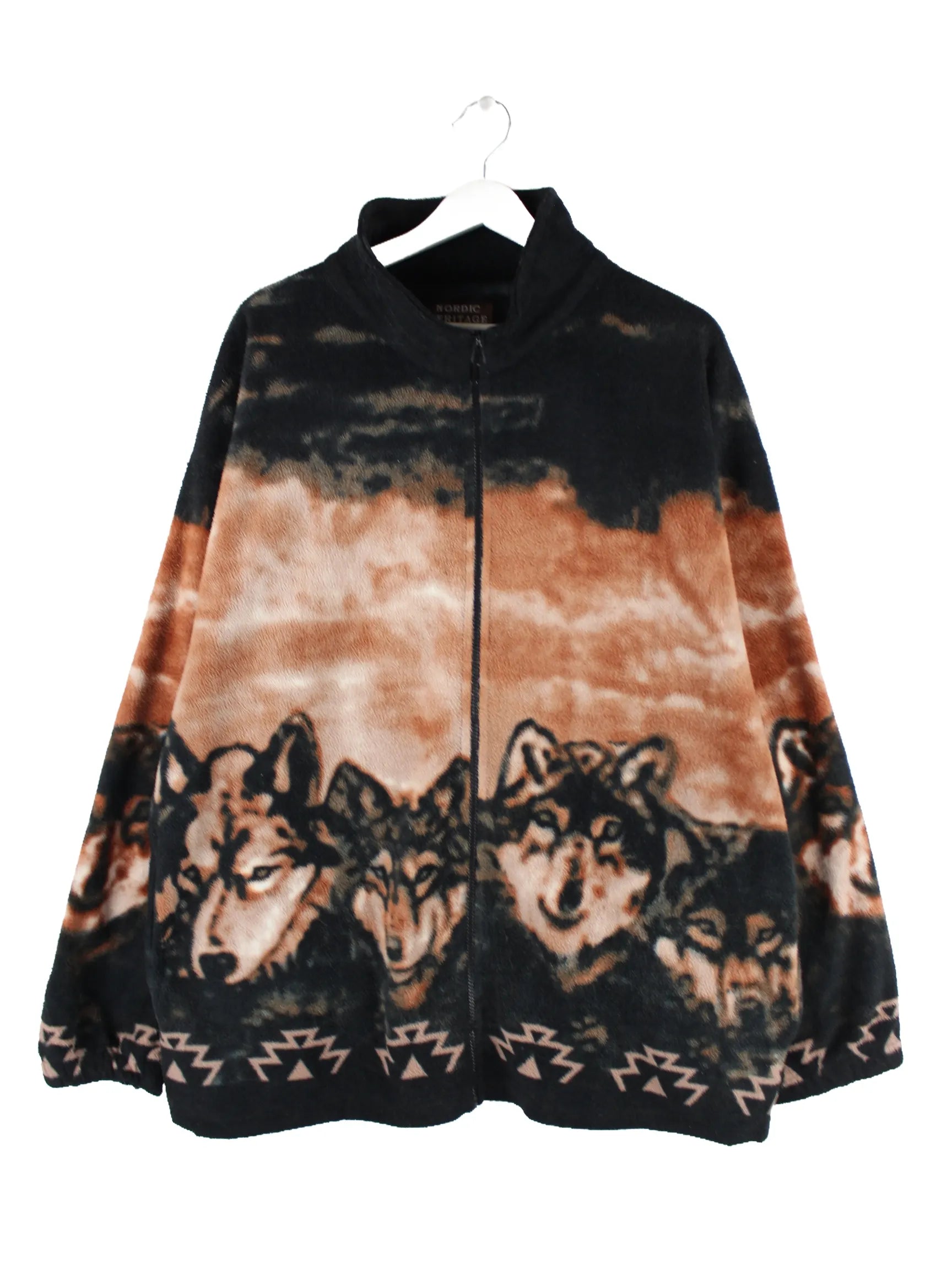 Vintage Wolf Pattern Fleece Jacke Mehrfarbig XXL