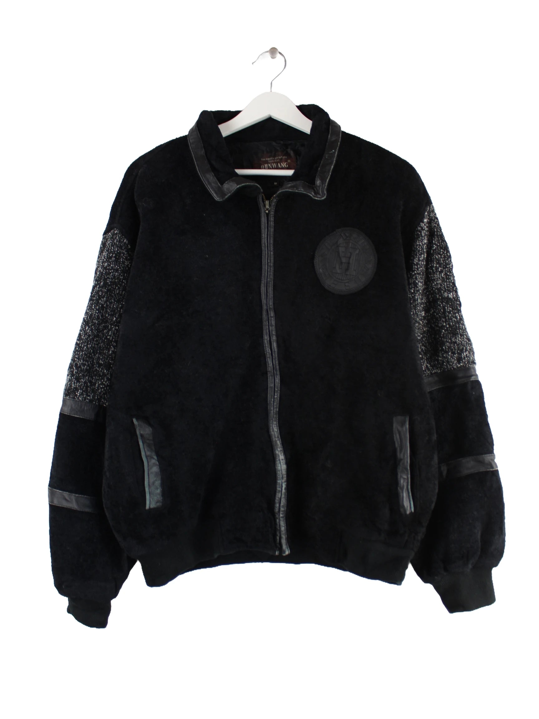 Vintage 90s Qunwang Bomber Jacke Schwarz L