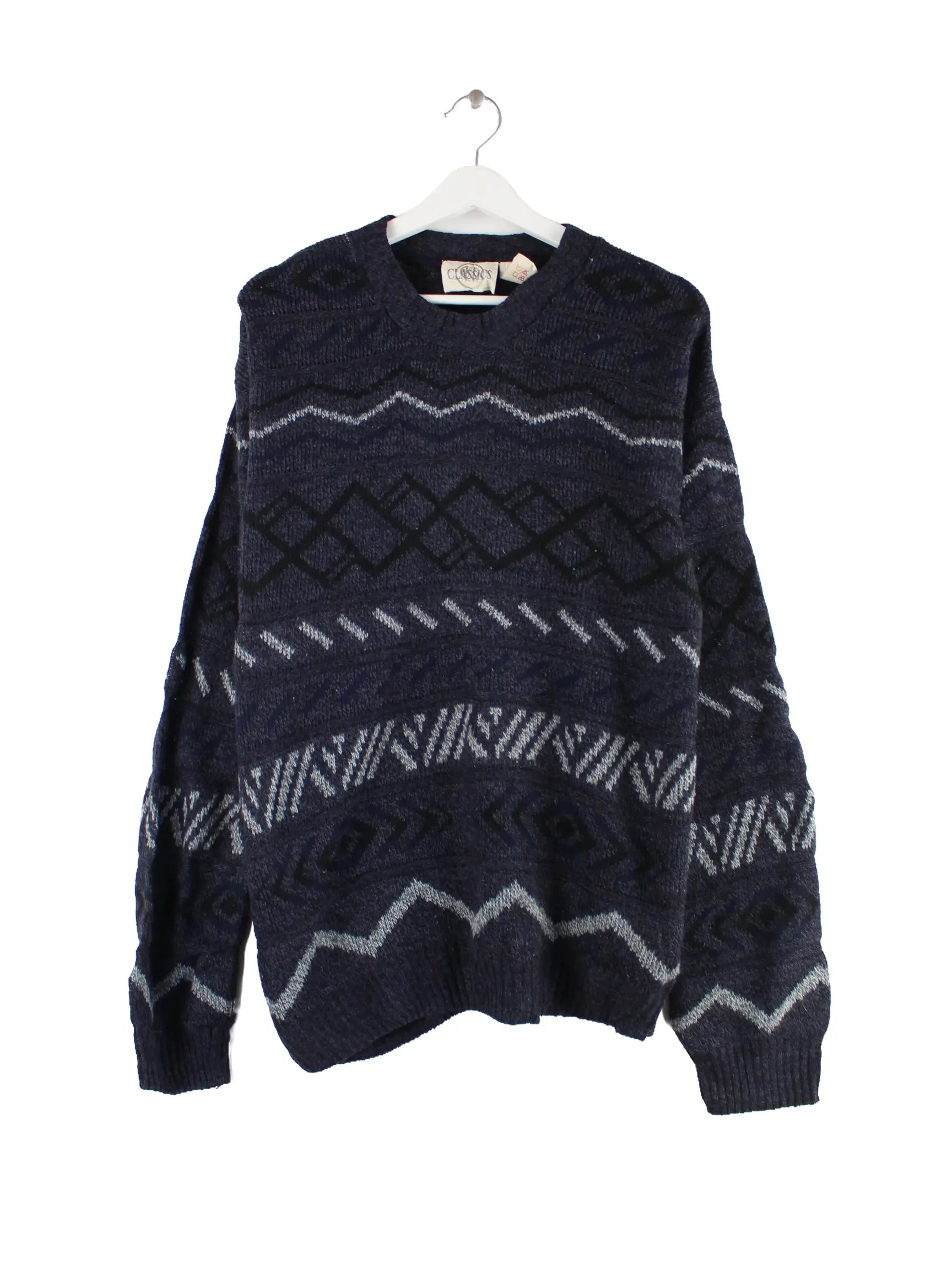 Vintage 90s Champs Crazy Pattern Pullover Grau L